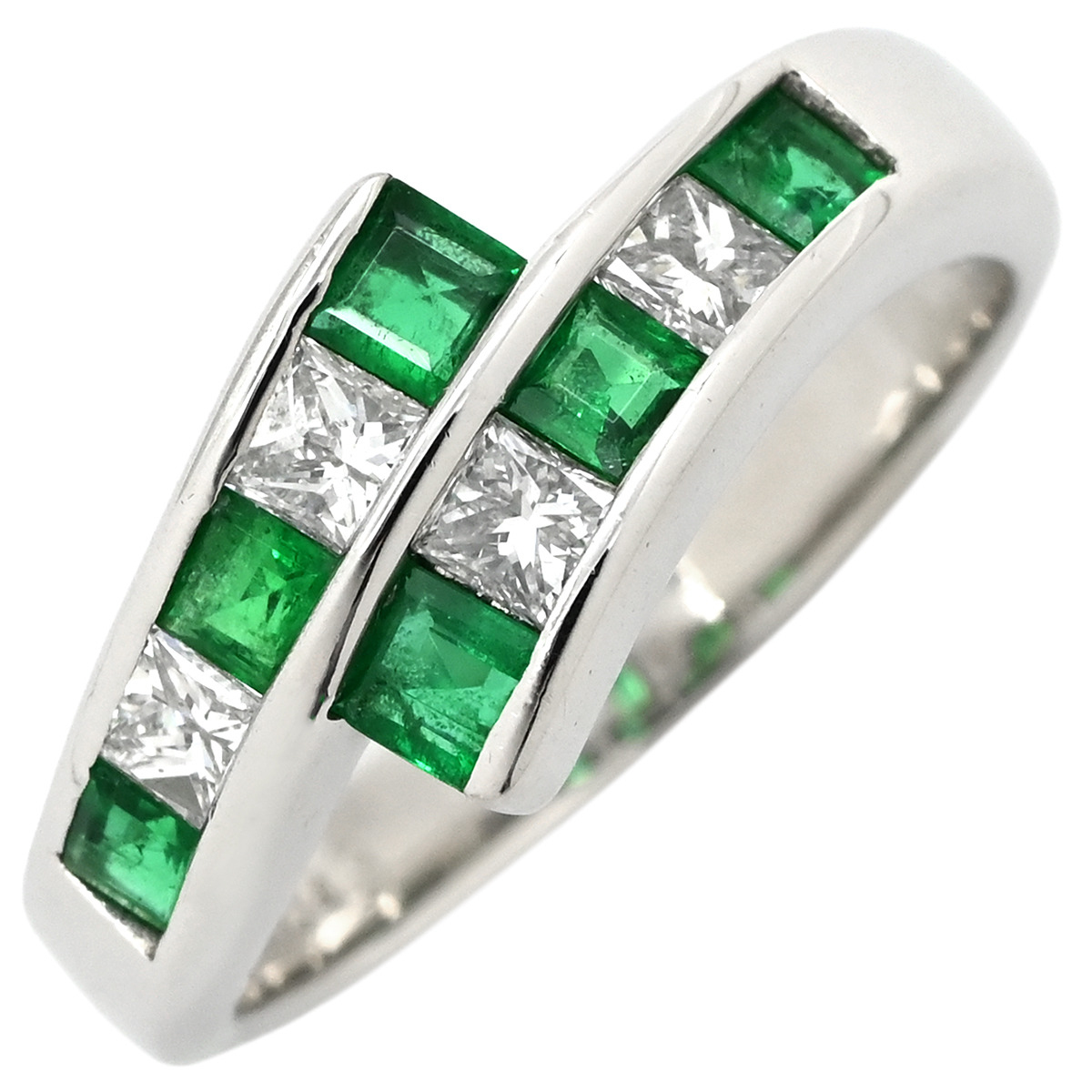 ノンブランド NON BRAND リング 指輪 Pt900 エメラルド ダイヤモンド プラチナシルバーグリーン 緑 プリンセスカット - 12号 レディース 中古 | |