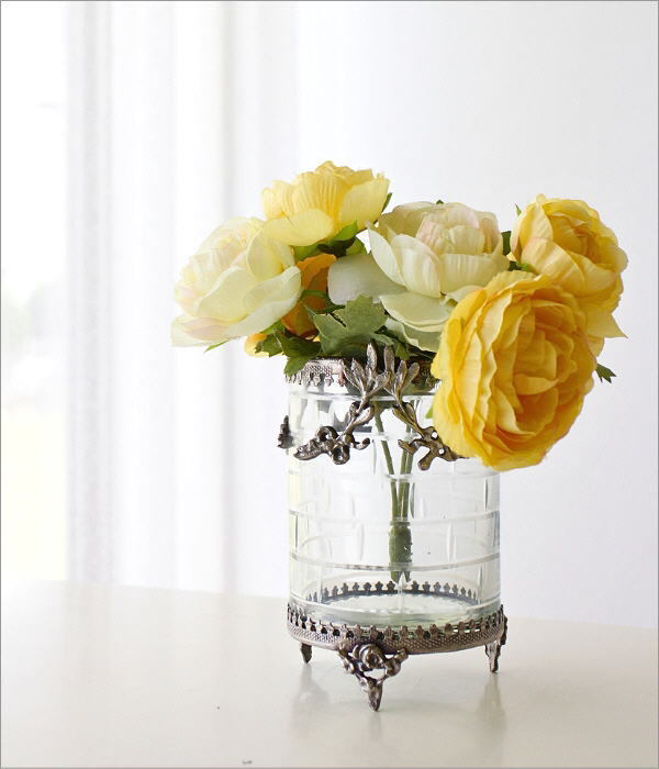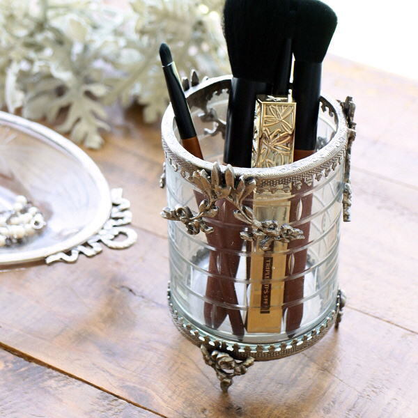 | 厚みのあるガラスに リボンやローズ、リーフなどの ブラスの装飾で囲った 重厚感のある脚付きガラスのホルダー ずっしりとした重みや 深みのある真鍮の色合いは 空間に高級感をプラスしてくれます ペンやメイクブラシを立てたり フェイクフラワーなどを飾る 花器にもおすすめです 商品名 : 真鍮とガラスのサークルホルダー 商品番号 : vin1454 全体サイズ(cm) : 幅8×奥行8.5×高さ13.5 ガラスサイズ : 直径7×深さ10 重量 : 370g 材質 : ガラス 真鍮 ※商品の特性上、小さな擦り傷や隙間、ガラスの気泡、がたつき、傾き、装飾の欠け、潰れ等はご容赦ください ※真鍮の特徴として使い込むうち酸化し色の変化が見られますが風合いとしてお楽しみください。 また、お届け時にすでに酸化の見られる商品もございます。商品の特徴と理解頂き、ご購入・ご使用をお願いします ※ディスプレイによる色の違いはご了承下さい |