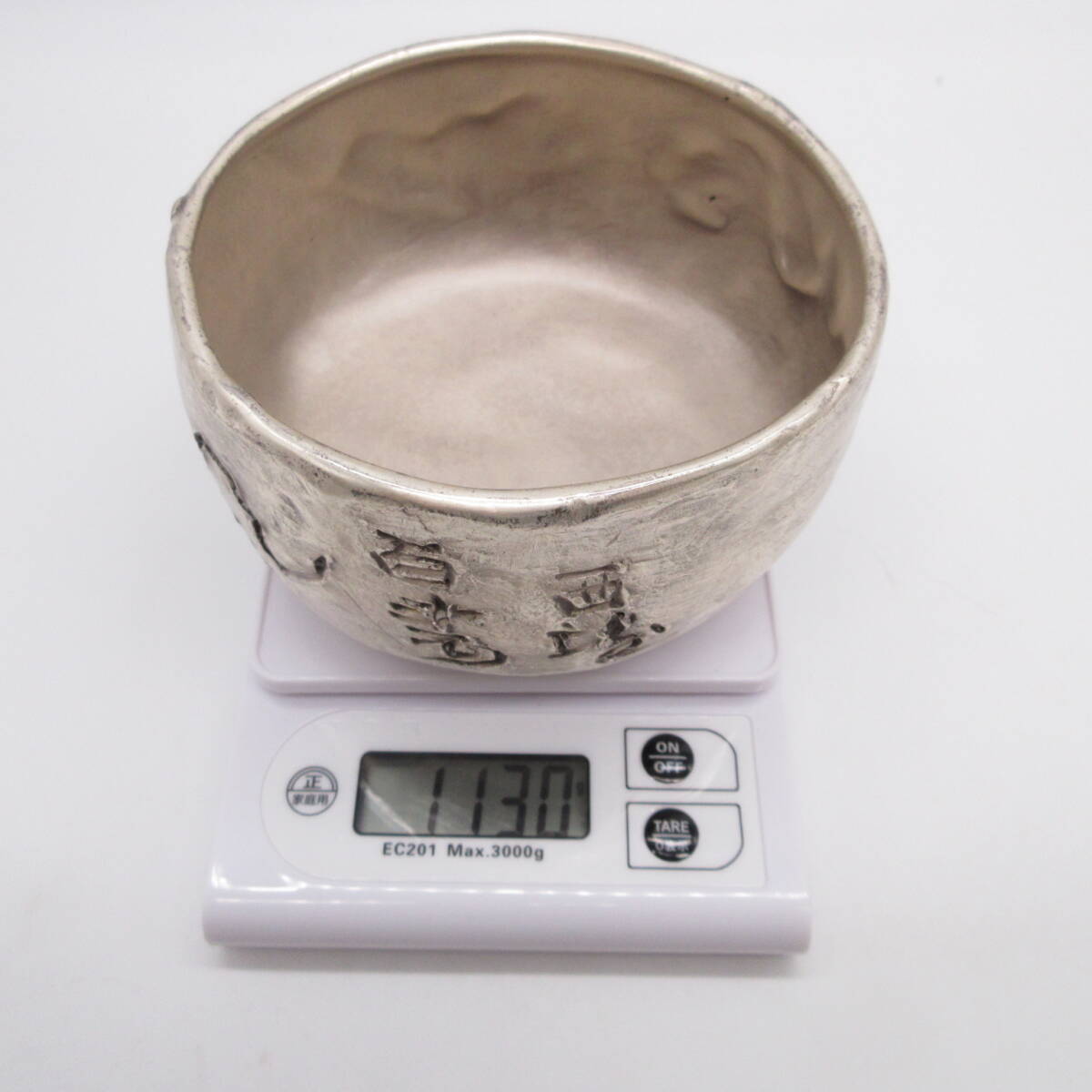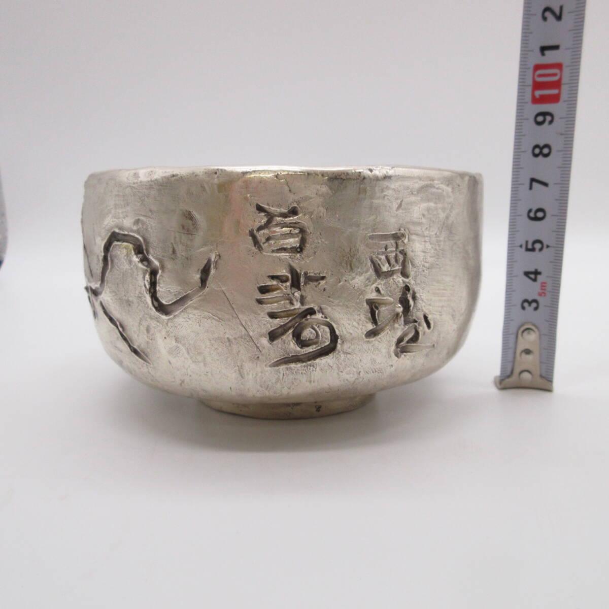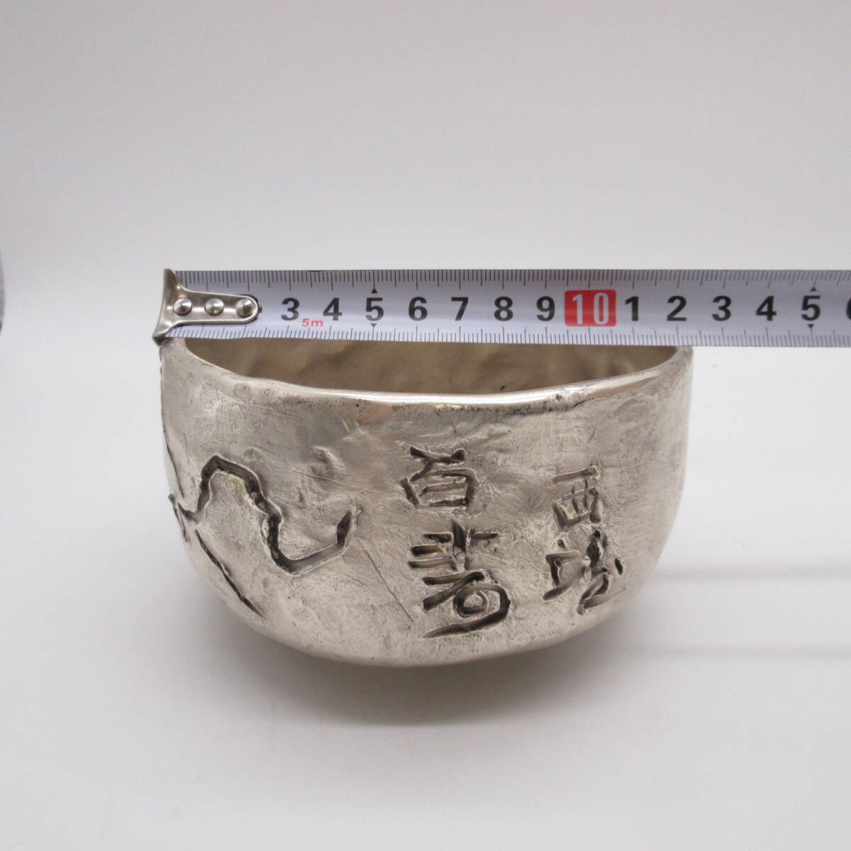 【北村西望 銀900刻印 彫刻茶碗 百寿西望 約1130g 箱無し】金属工芸 銀製 美術品 D