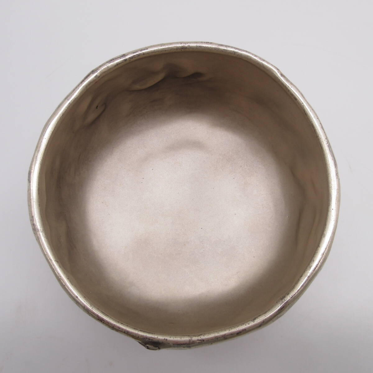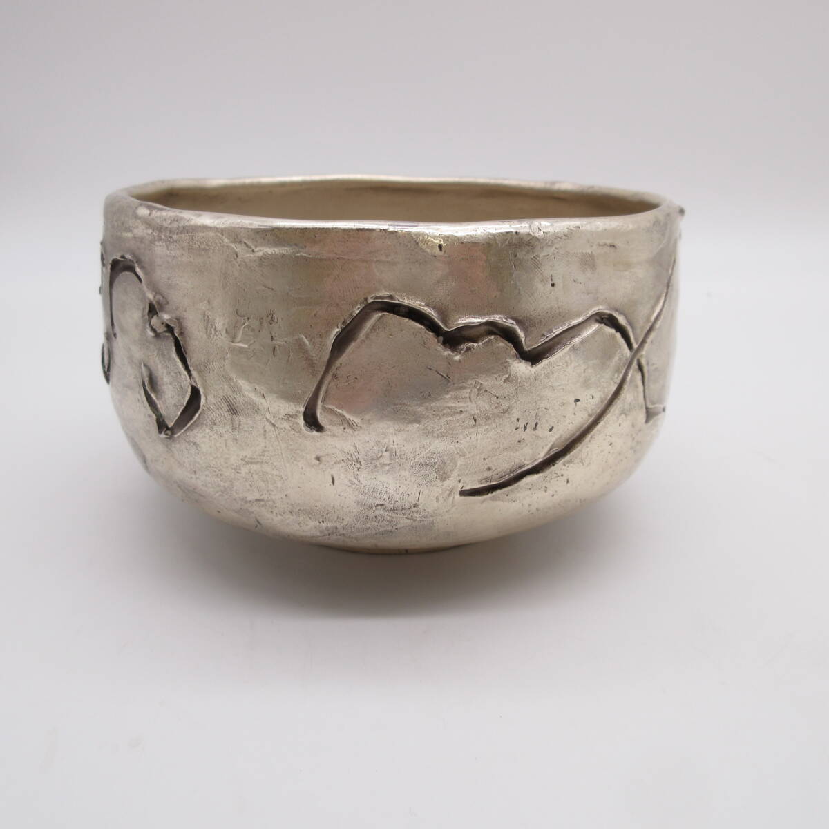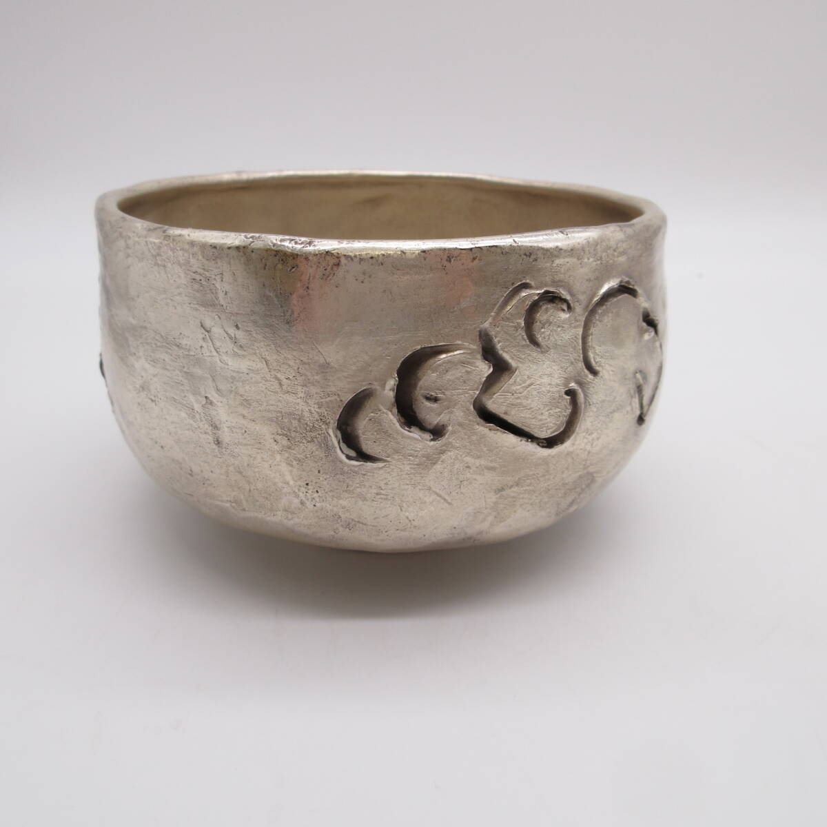 【北村西望 銀900刻印 彫刻茶碗 百寿西望 約1130g 箱無し】金属工芸 銀製 美術品 D