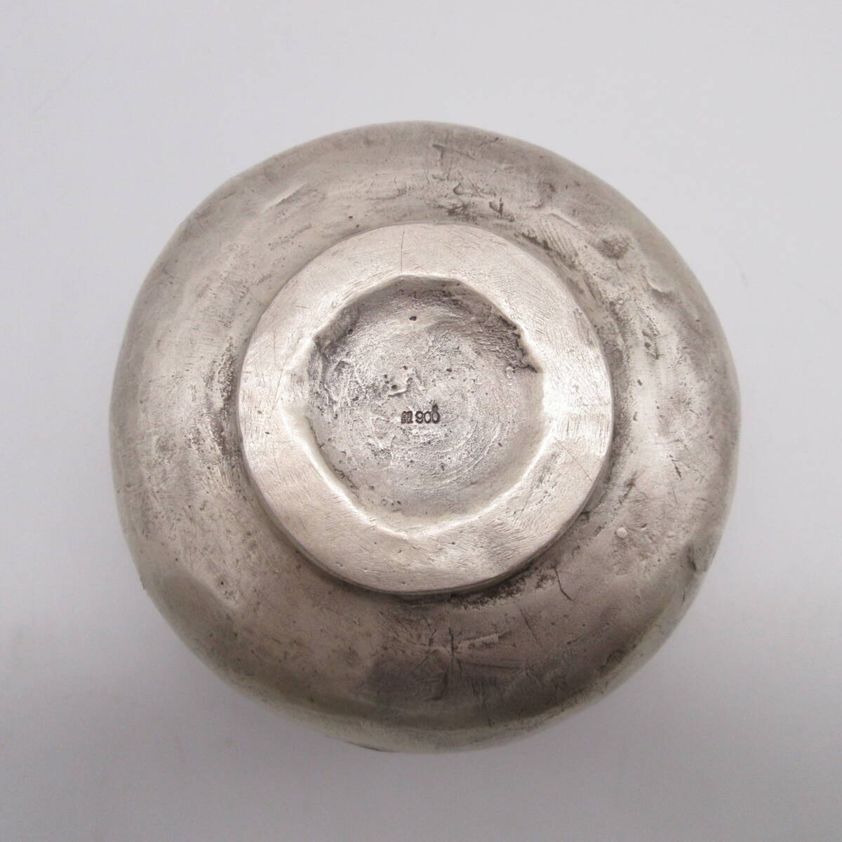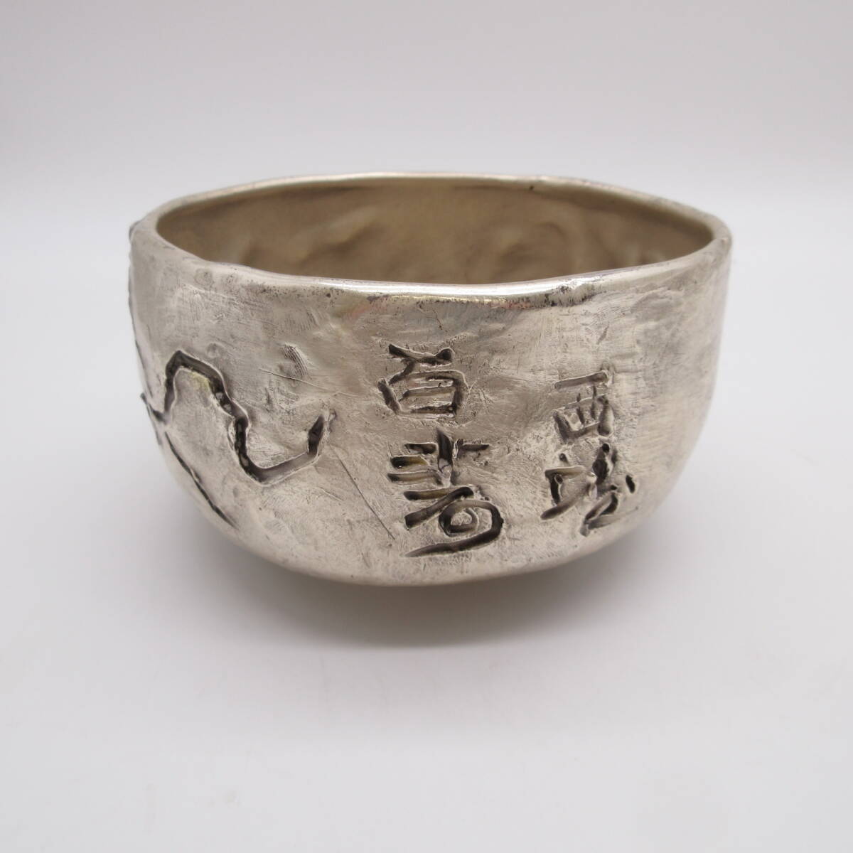【北村西望 銀900刻印 彫刻茶碗 百寿西望 約1130g 箱無し】金属工芸 銀製 美術品 D