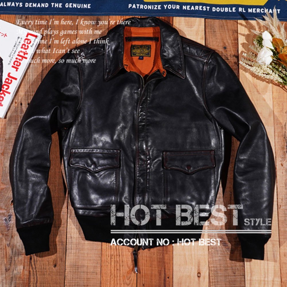 希少 1.4mm 茶芯ホースハイド復刻40's USAF TYPE A-2 フライトジャケット WWII 1942 大脱走-オイルレザー馬革HAY704【XXL】