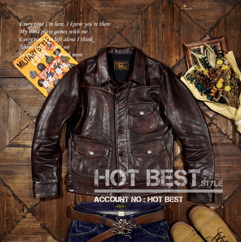 1.3mm 茶芯牛革 復刻20's A-1タイプ ウォッシュ加工 ヴィンテージ コサックスポーツジャケット ボマー ボンバー フライト Y1399/3XL