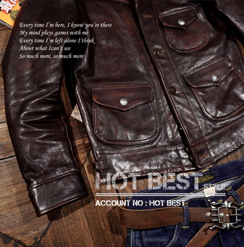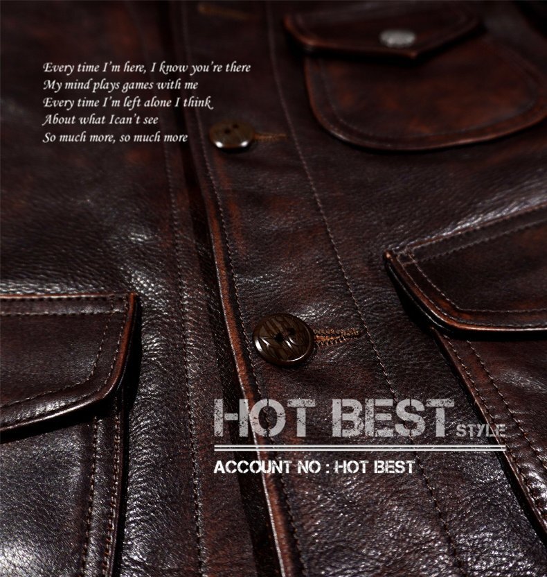 1.3mm 茶芯カウハイド 復刻20's A-1タイプ ウォッシュ加工 ヴィンテージ コサックスポーツジャケット ボマー ボンバー フライト イタリアンレザー 牛革 Y1399/3XL