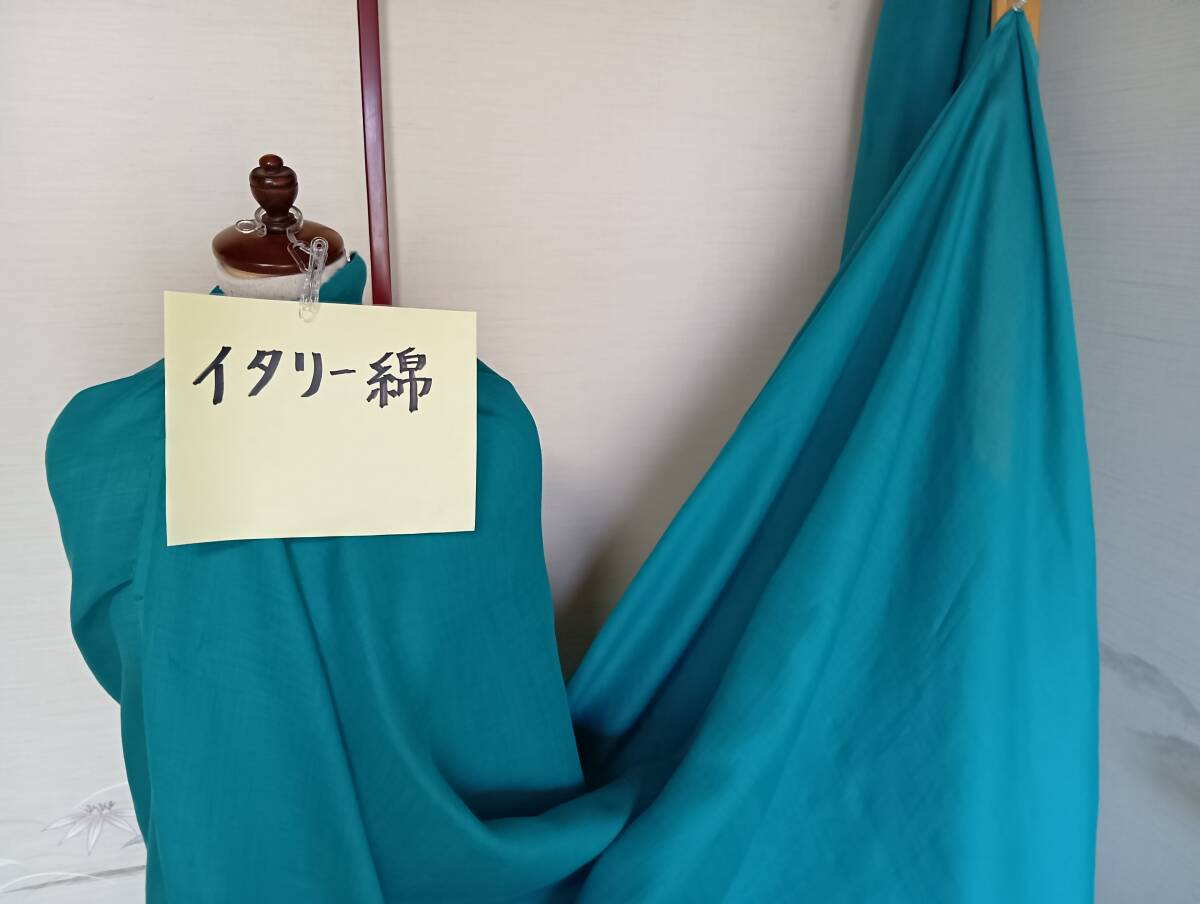 イタリー綿(グリーン系)巾150cm 長さ200cm 未使用ですが、在庫品のため難あるかもわかりませんので、完品をお求めの方や神経質の方はご遠慮ください。また、写真の撮り方が未熟なために色合いや質感が実物と違う場合がありますので、まえもって、ご了承の上、入札頂きますように、お願い申しあげます。