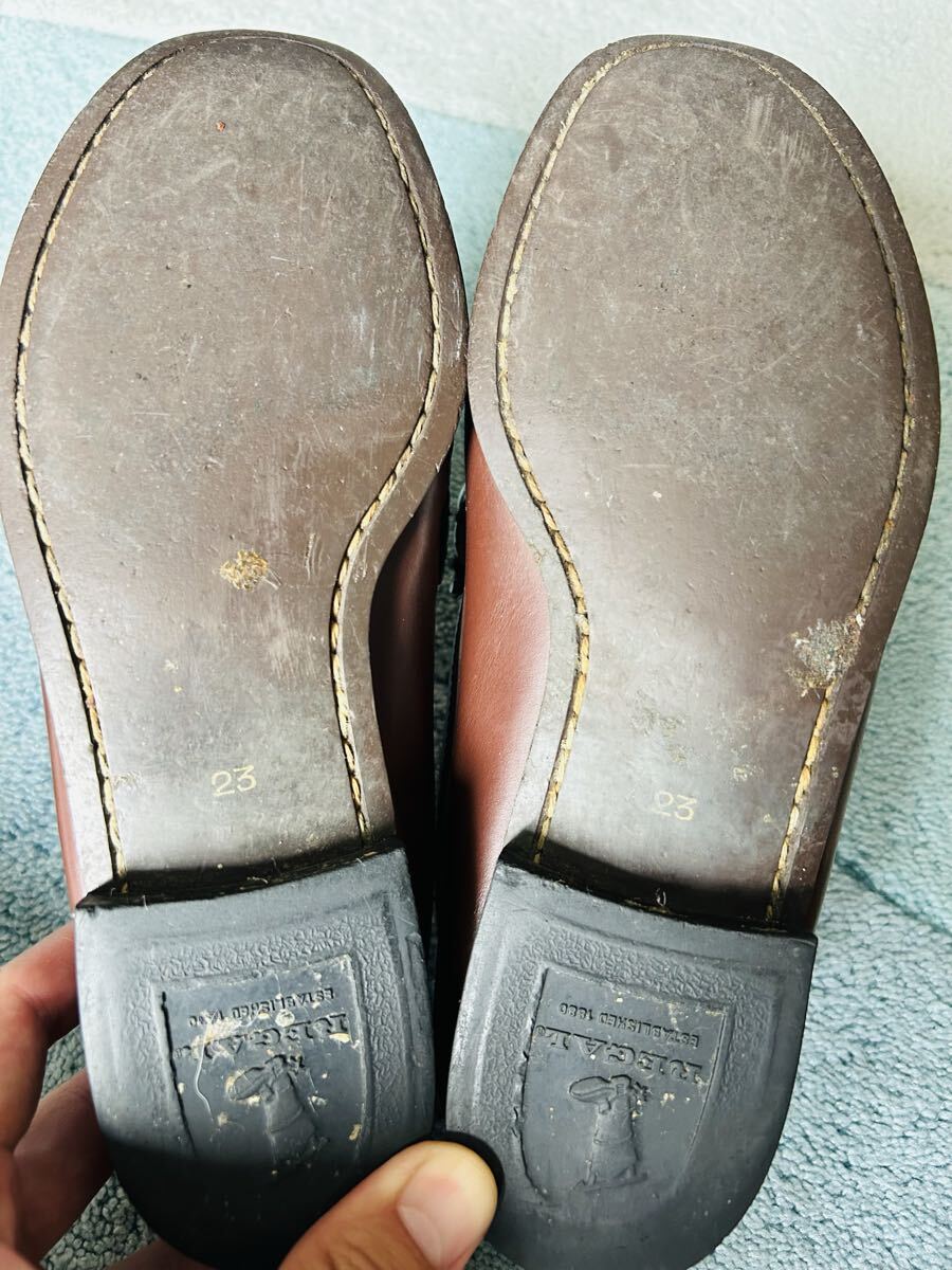 数ある商品の中からご覧頂き誠にありがとうございます! 商品名 リーガル タイプ コインローファー サイズ 23 カラー ブラウン 状態 レベルは3 【5】新品に近い美品状態 【4】履きジワ・カカトの減りも少なく綺麗な状態 【3】一般的な中古品レベルの状態 【2】履きジワ・カカトの減りもある状態 【1】ボロボロ どんなシーンでも対応できるリーガルのローファーになります。革本来の良さを体感してもらいたく、インポートのカーフを一足一足丁寧に職人が仕上げを施しております。履き続けるほどに表情が変化し、愛着ある自分だけの一足になってゆきます。一足は持っておきたいですね♪ アッパー、ソール共に良好です。 使用回数も多くなく全体的に美品です★ シューキーパーは付属しませんのでご了承下さい。 不明点ございましたらご質問下さい。 | |||