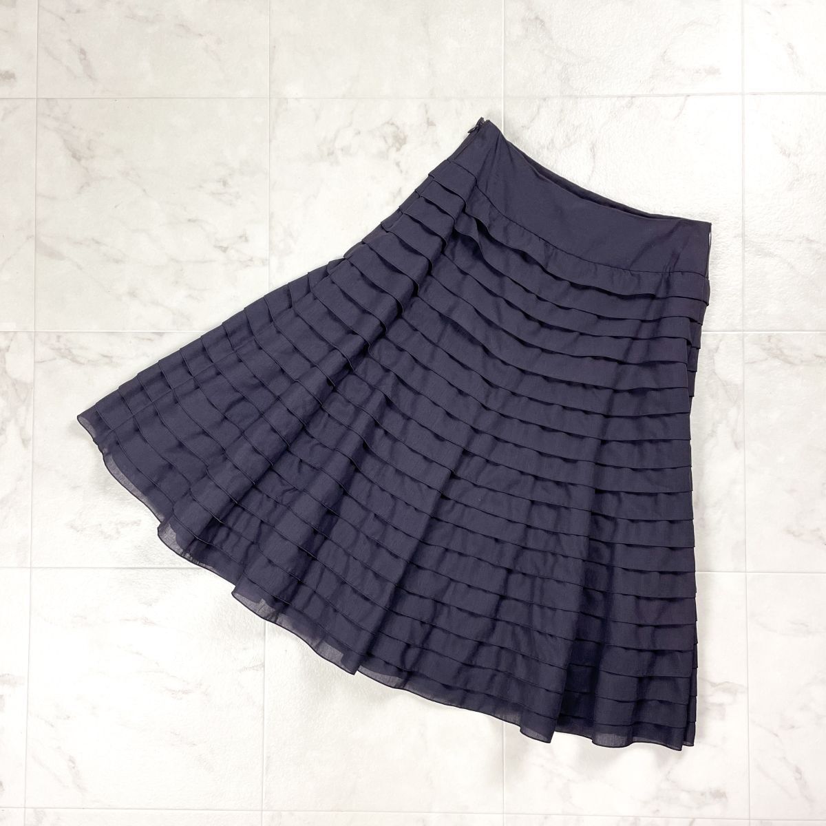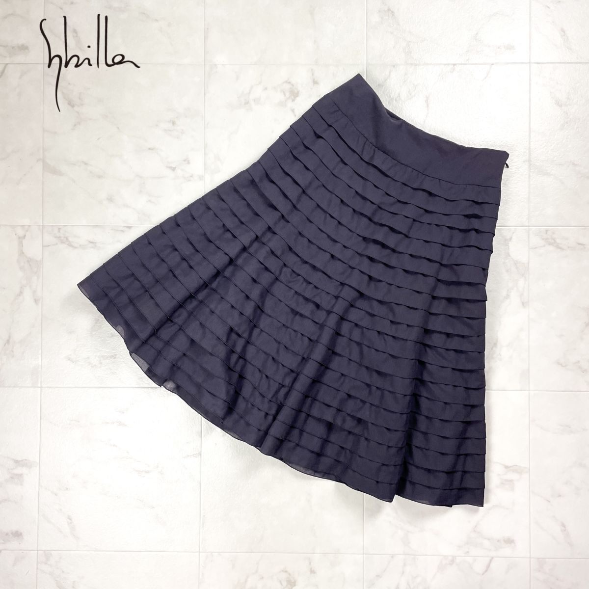 Sybilla シビラ ティアードフレアスカート 膝丈 墨黒 ブラック グレー サイズL*HD329