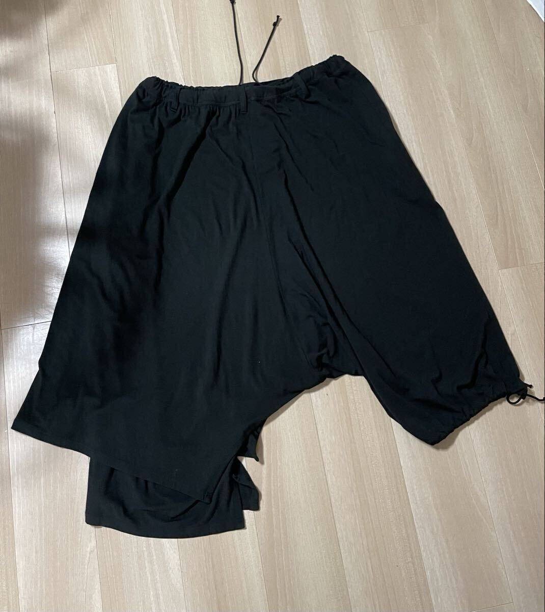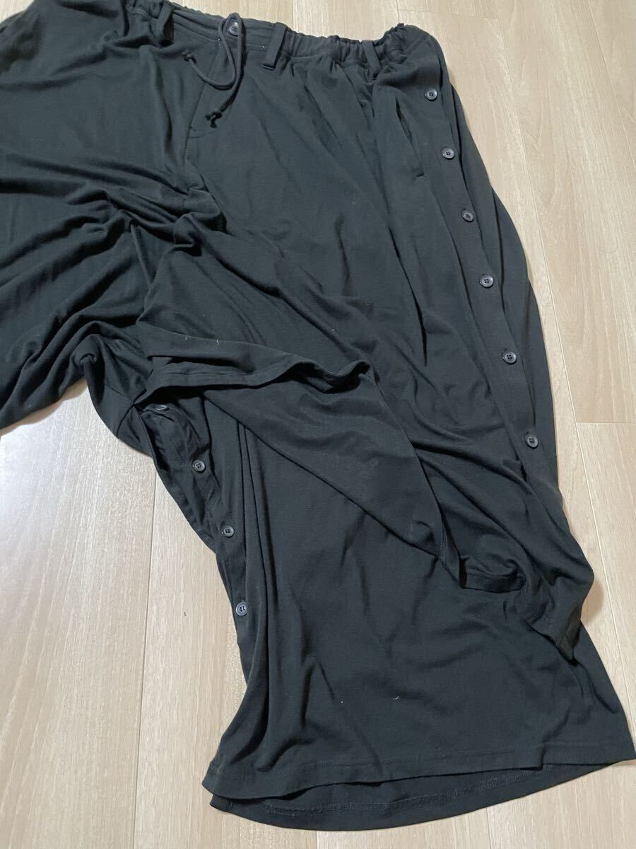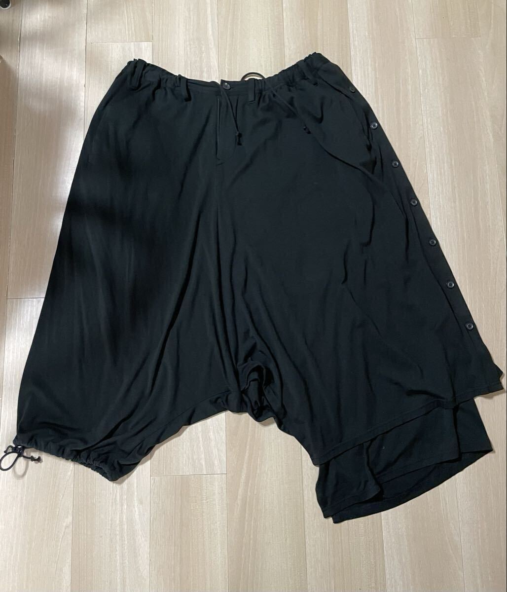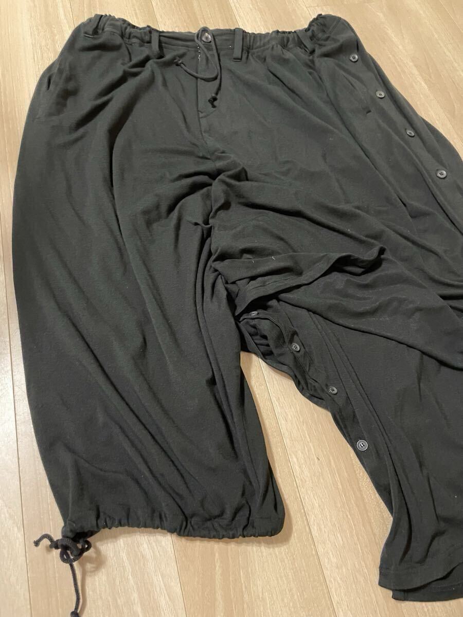 その他 :アクリルとレーヨン、ポリウレタン混紡で柔らかいジャージのような素材です。右半分は二重になっていてそれぞれ外側と内側にボタンがあります。左半分は少し丈が短く裾がゴムと紐です。アシンメトリーでヨウジヤマモトらしい雰囲気です。