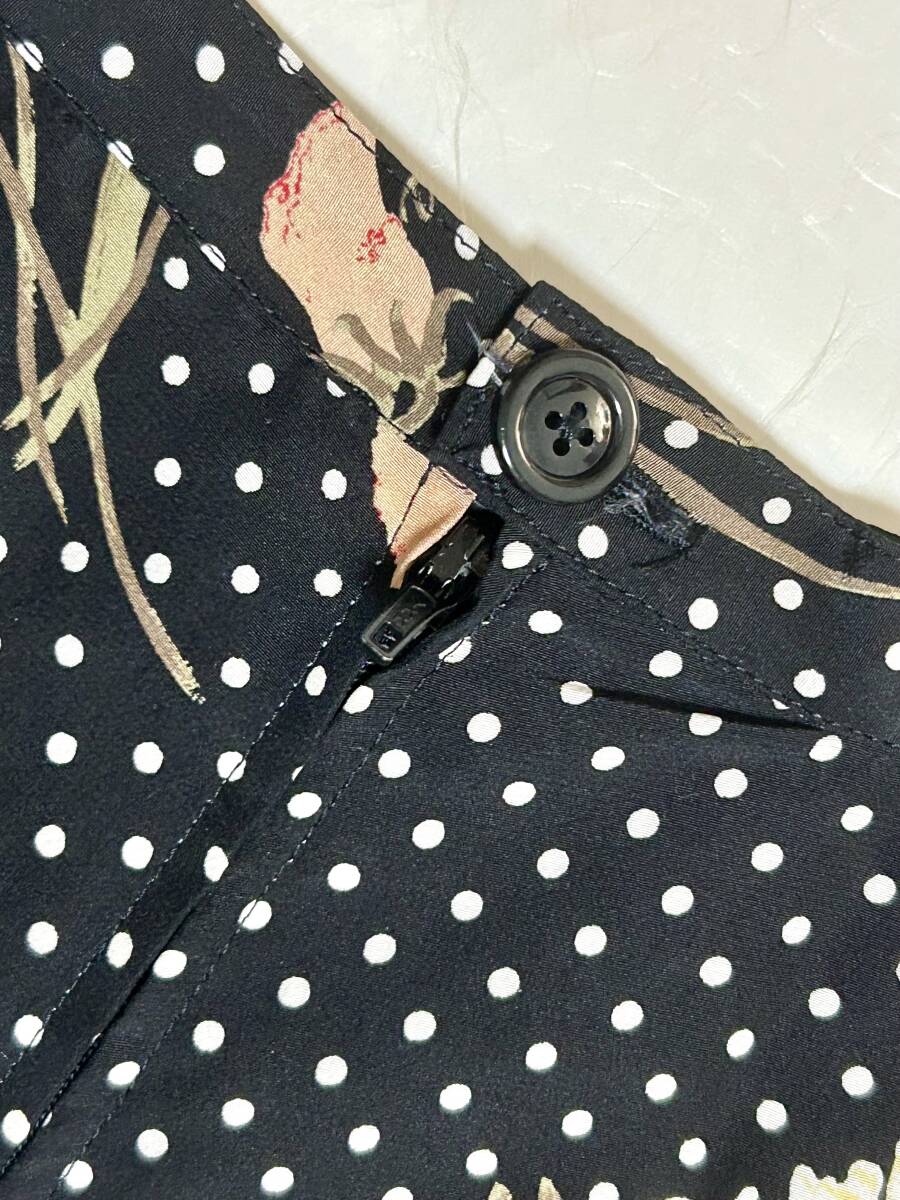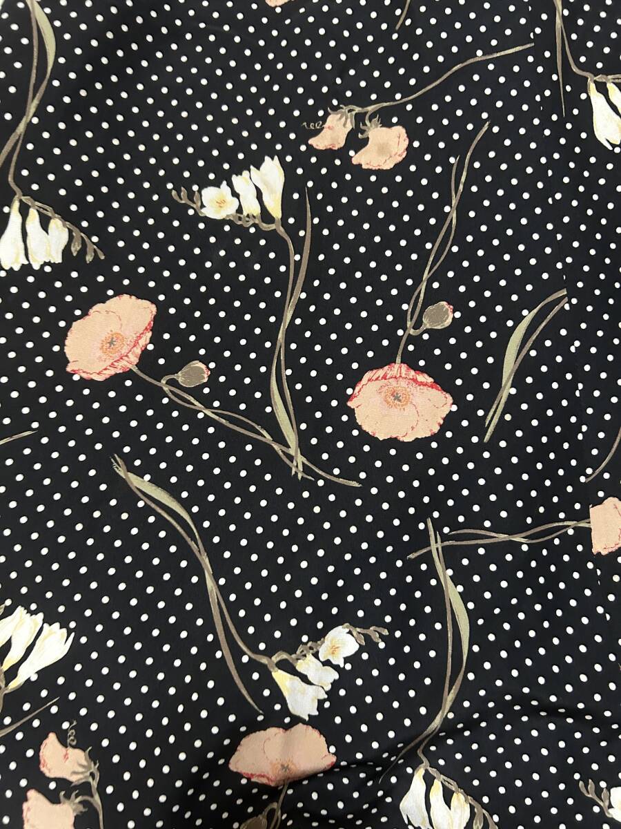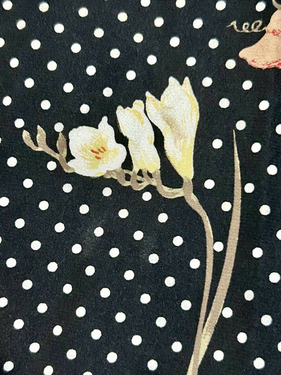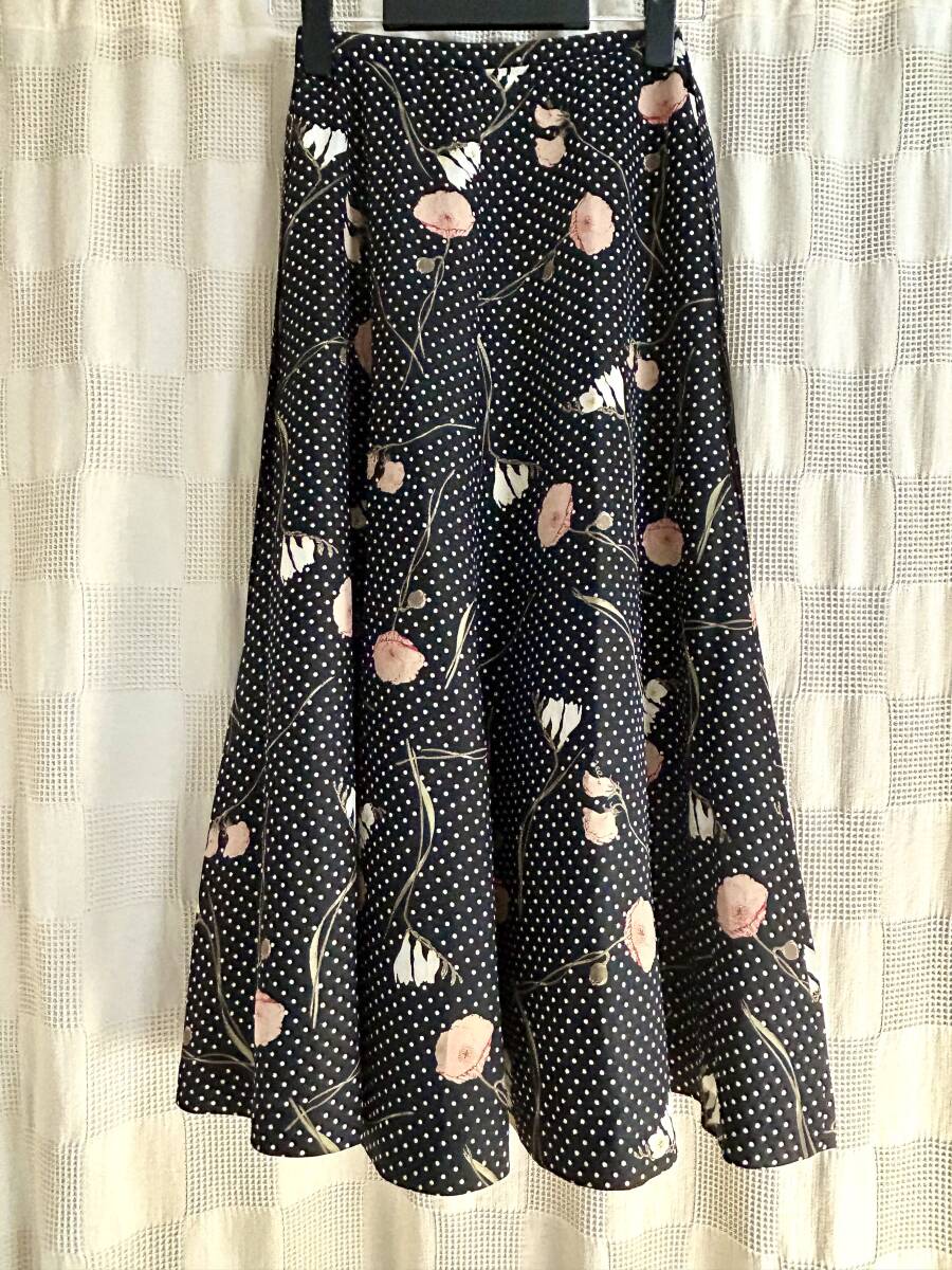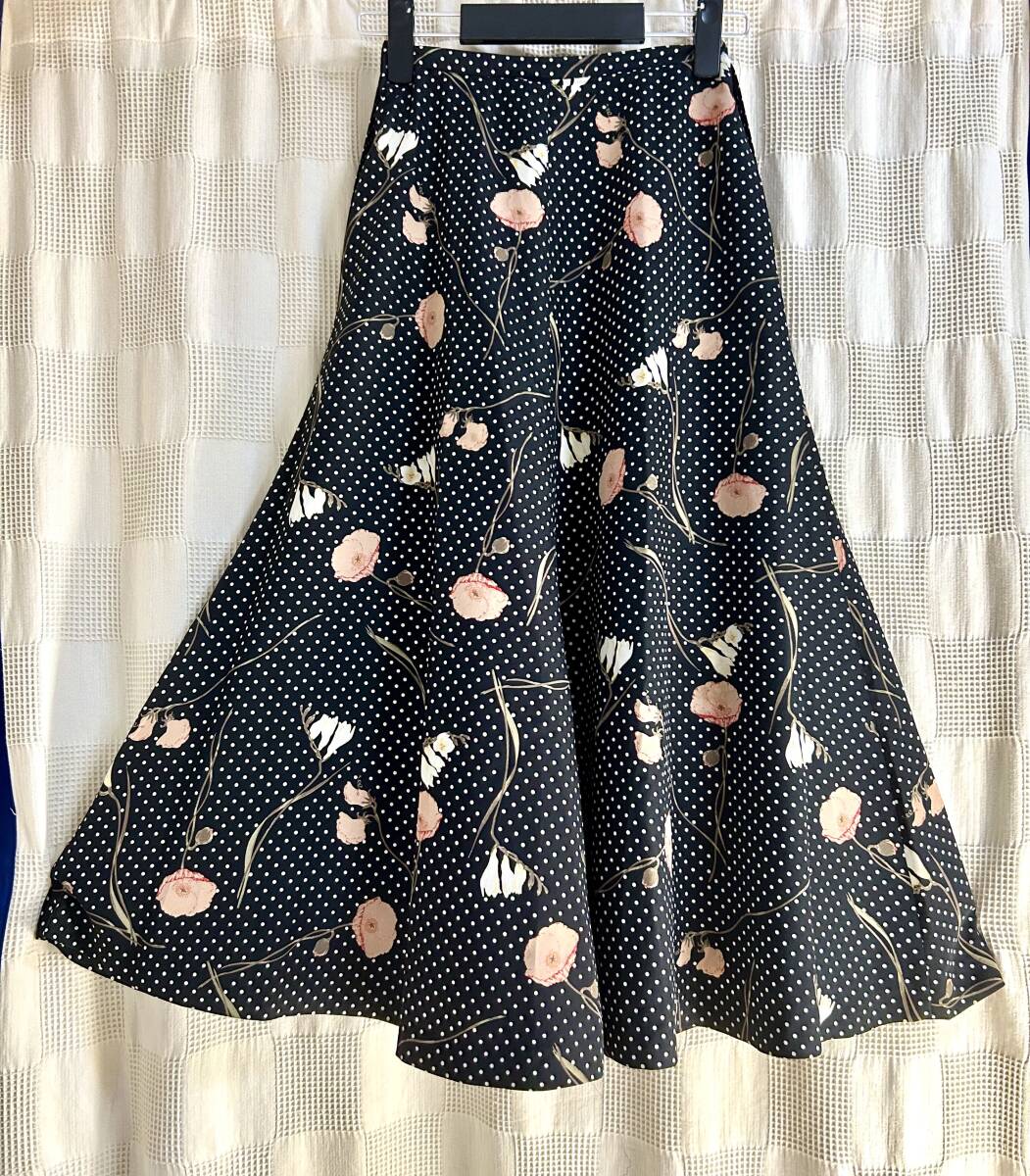 ★ヴィンテージ★ピンクハウス PINK HOUSE 水玉×フラワープリントのフレアースカート ドット ポピー フリージア 黒 カネコイサオ