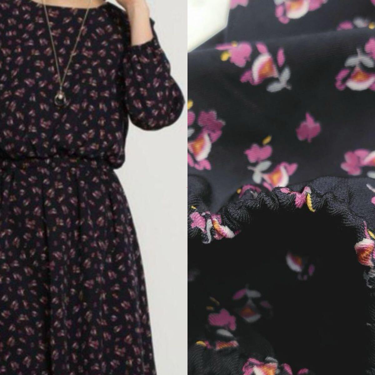 花や植物をモチーフに描くアールヌーボー風の小花柄プリント七分袖ワンピースです。