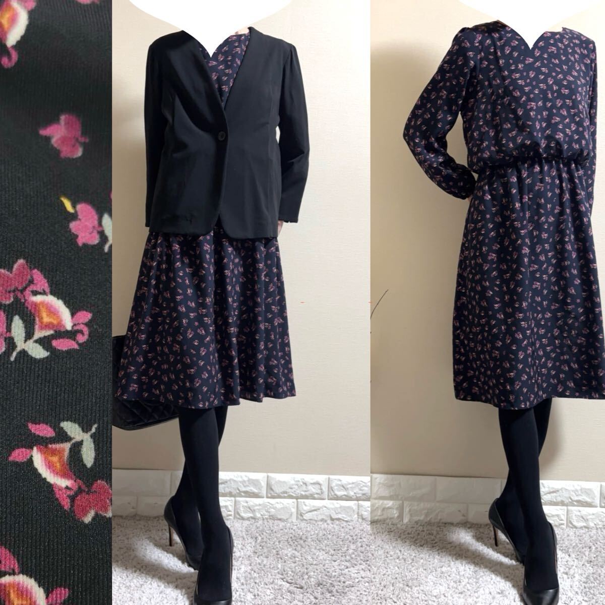着るだけでスタイルアップして見える美シルエットで上質な濃紺ワンピースです♪