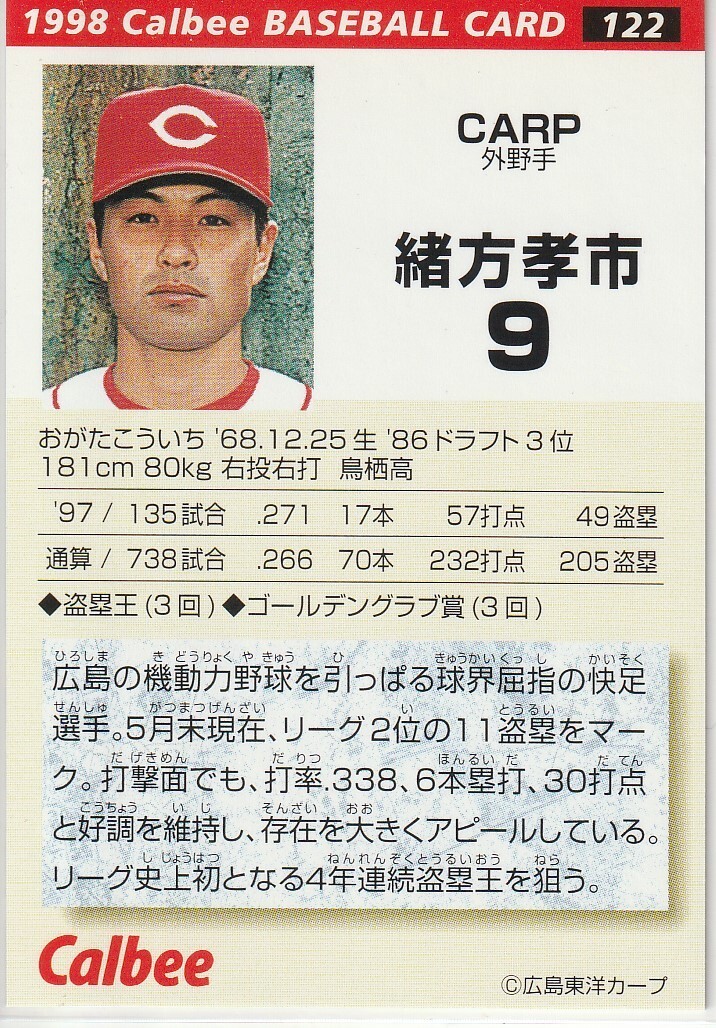 ●1998カルビー 【緒方 孝市】プレ版:金箔押サインパラレル No.122:広島