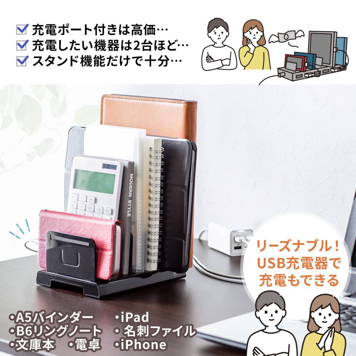 サンワダイレクト スマホ タブレットスタンド 10台収納 複数 連結可能 ブラック 200-STN072BK