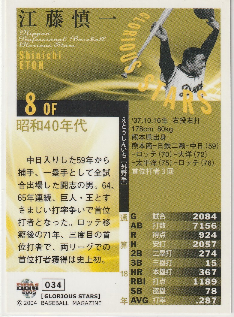 ●2004BBM 【江藤 慎一】きらめくスターたち No.034:中日、ロッテ R