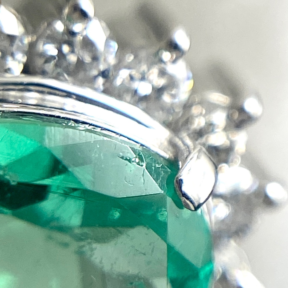 | エメラルド:0.91ct、メレダイヤ:0.30ct 中古品のため、若干のキズや汚れ、エメラルドにキズや内包物がございます。 |