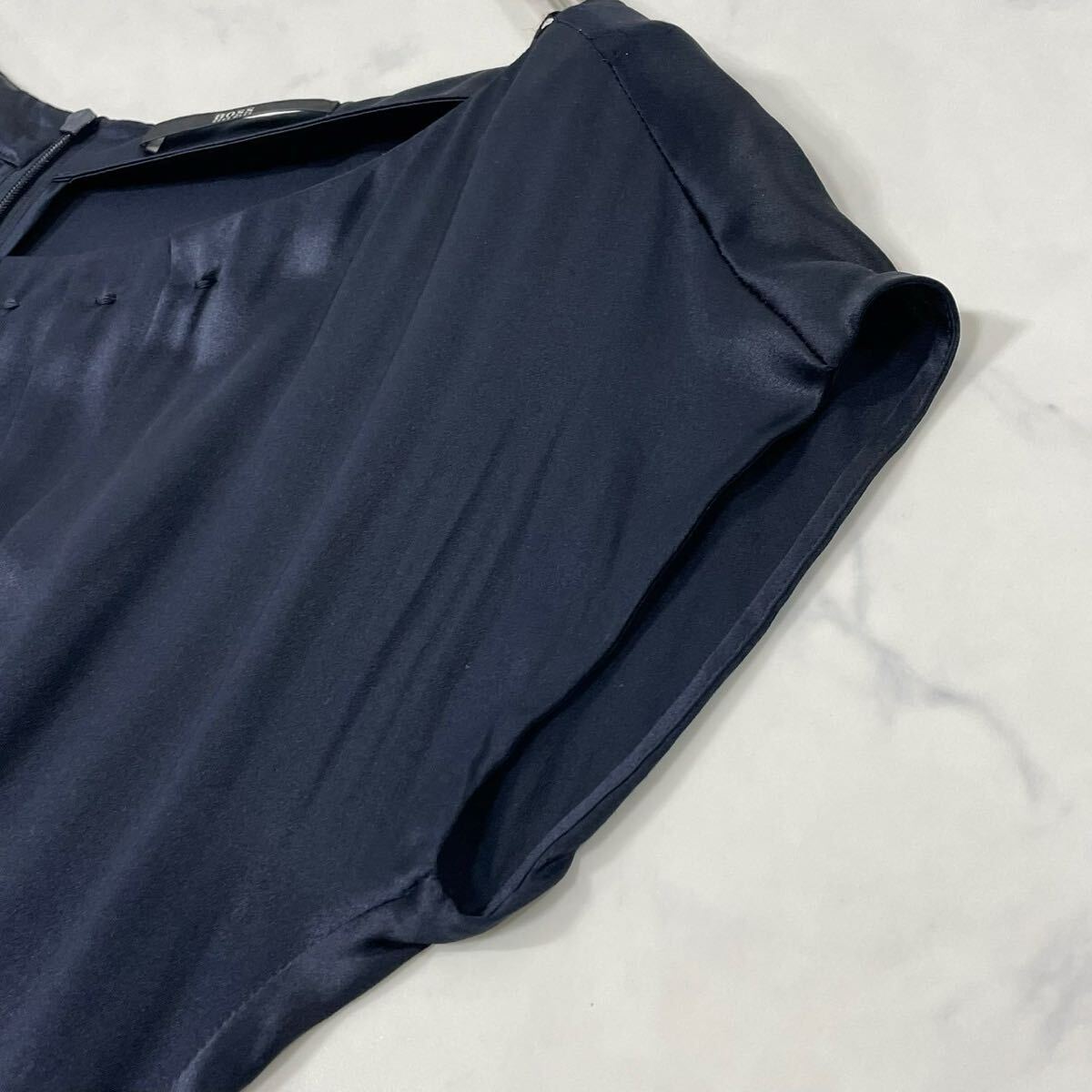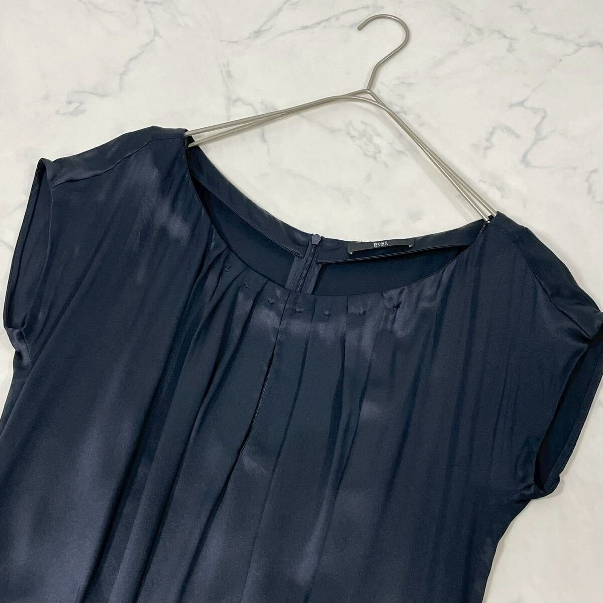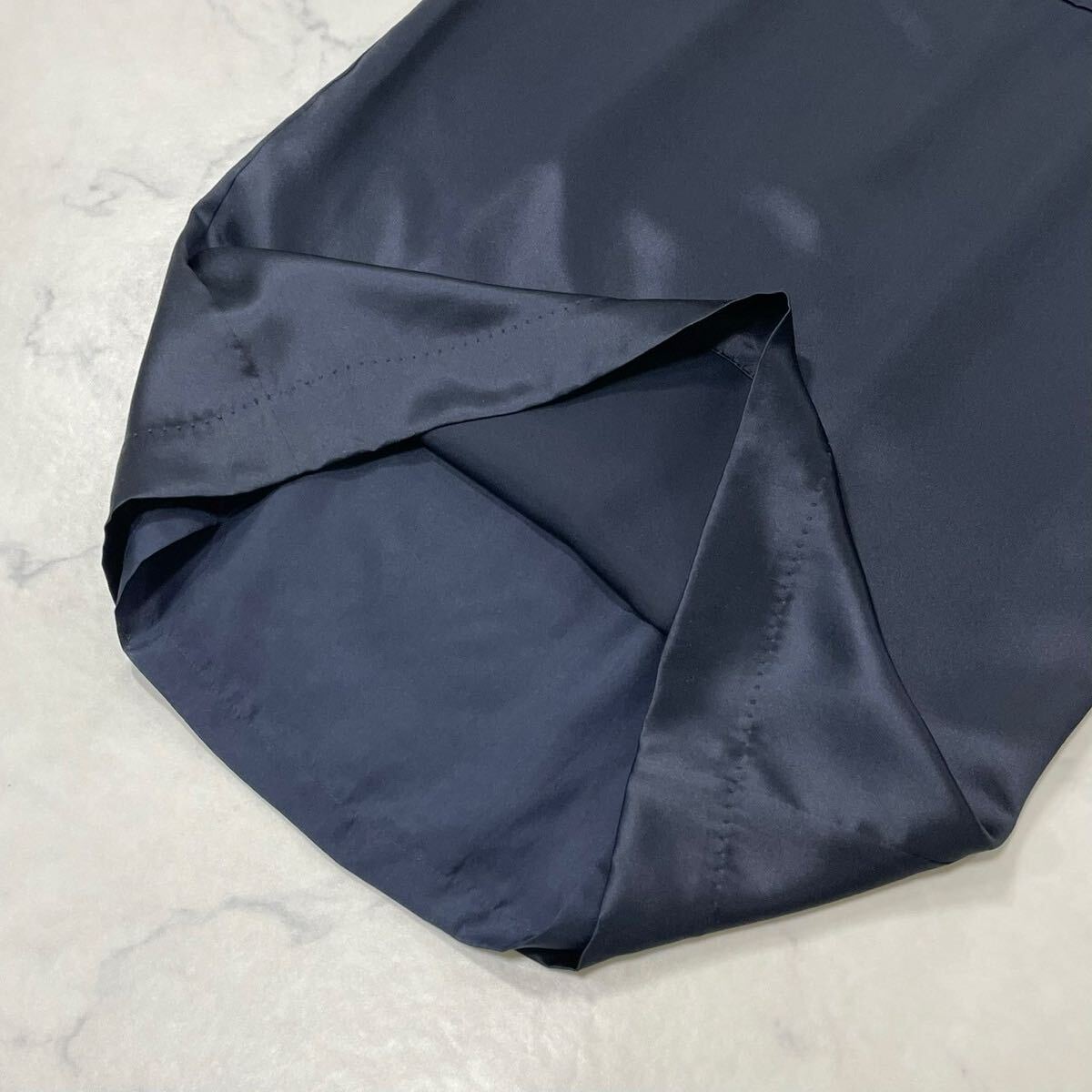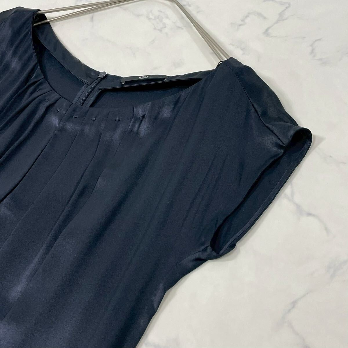 切替 ワントーン 裏地付き タック ベンツ ジップ シルク クルーネック フレンチスリーブ ひざ丈 ワンピース