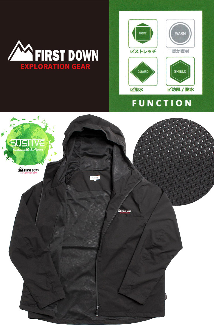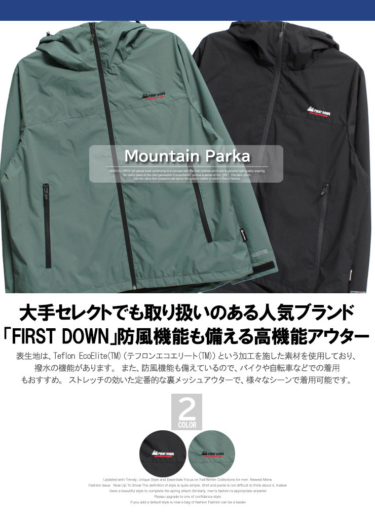 商品名 | 【新品】 3L ブラック FIRST DOWN ファーストダウン マウンテンパーカー メンズ 大きいサイズ ストレッチ 撥水加工 裏メッシュ ウインドブレーカー |