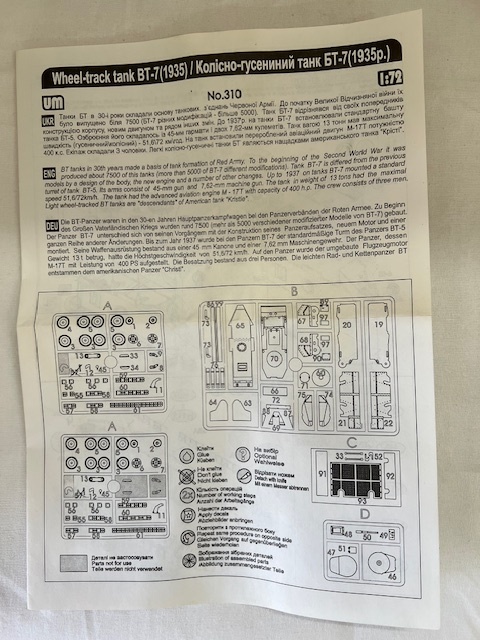 【丸-2081】内袋未開封品 ソビエト軍軽戦車 BT-7(1935年) 1/72スケール プラモデル NO.310 ウクライナ製 2個まとめ売り/(S) |
