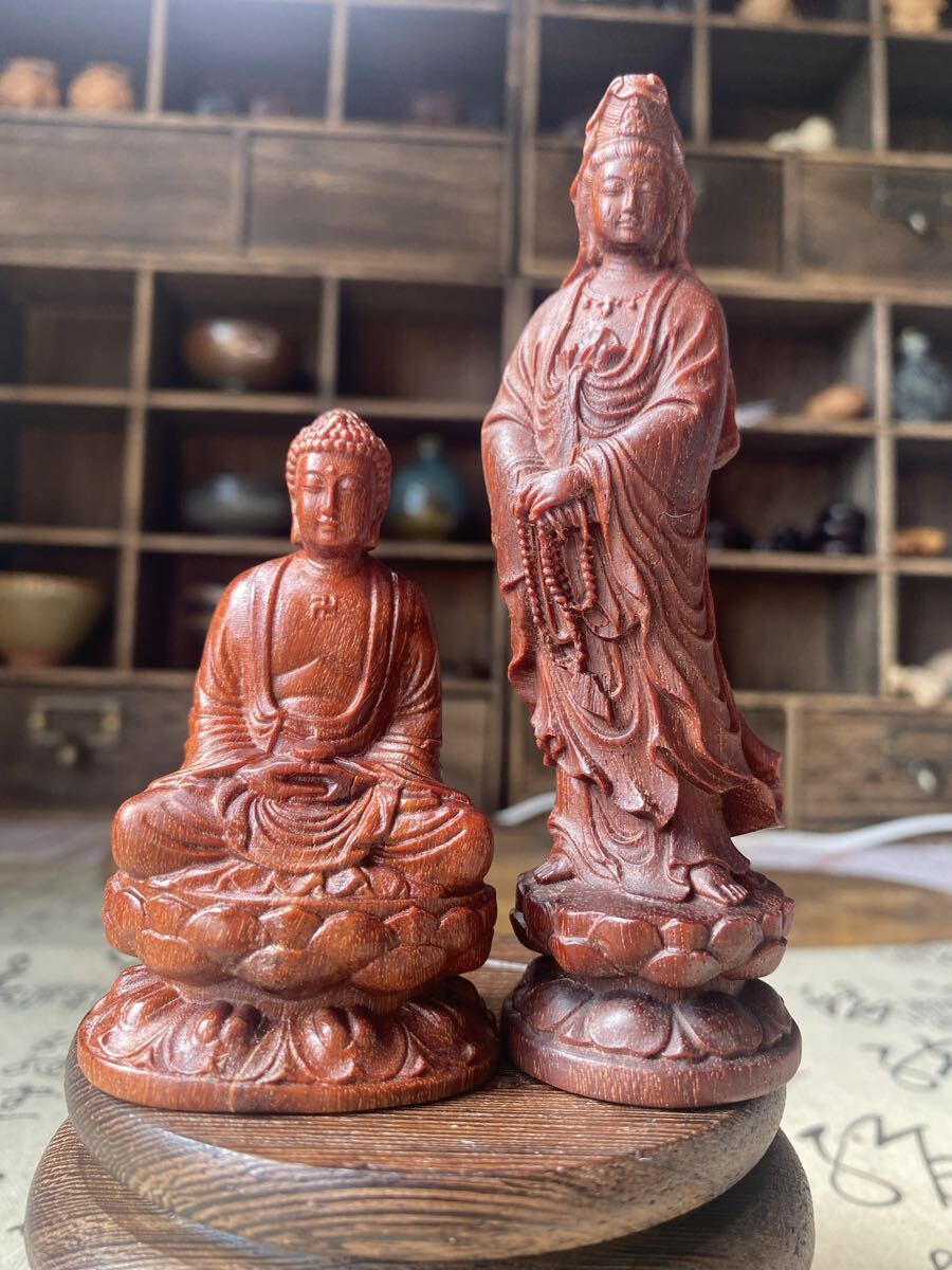 送料無料 木彫刻 観音 大日如来木彫置物 紅木材 細工精彫 木彫仏像 開運風水 座像 立像 お守り 観音菩薩 尊像