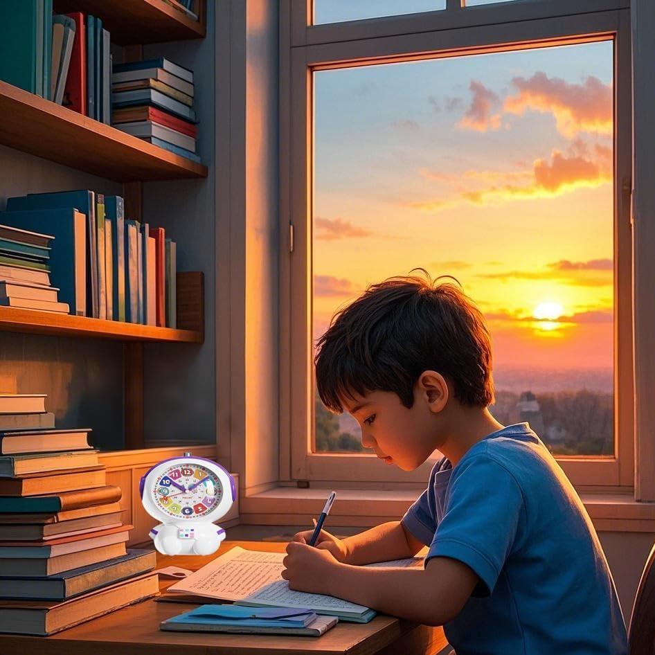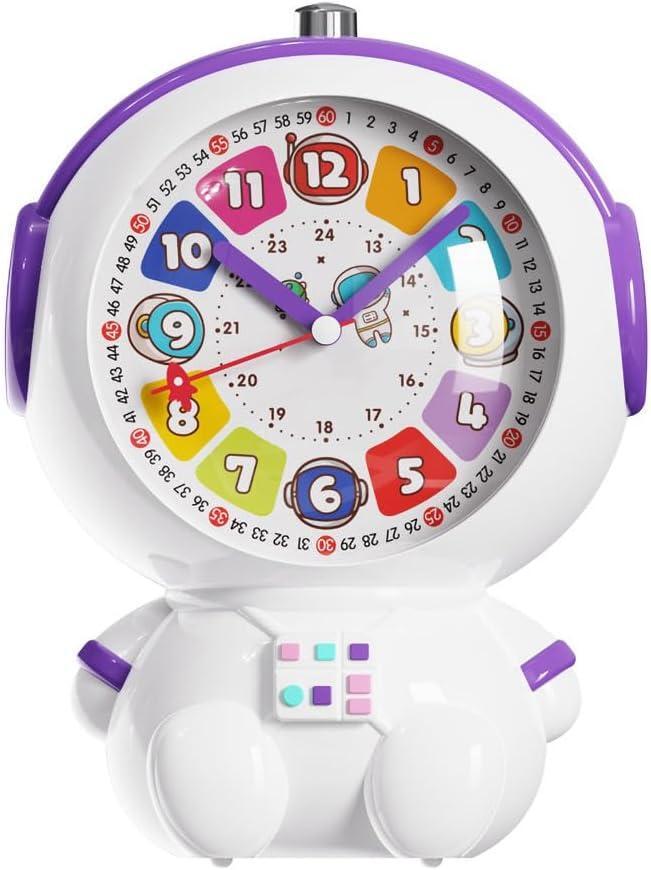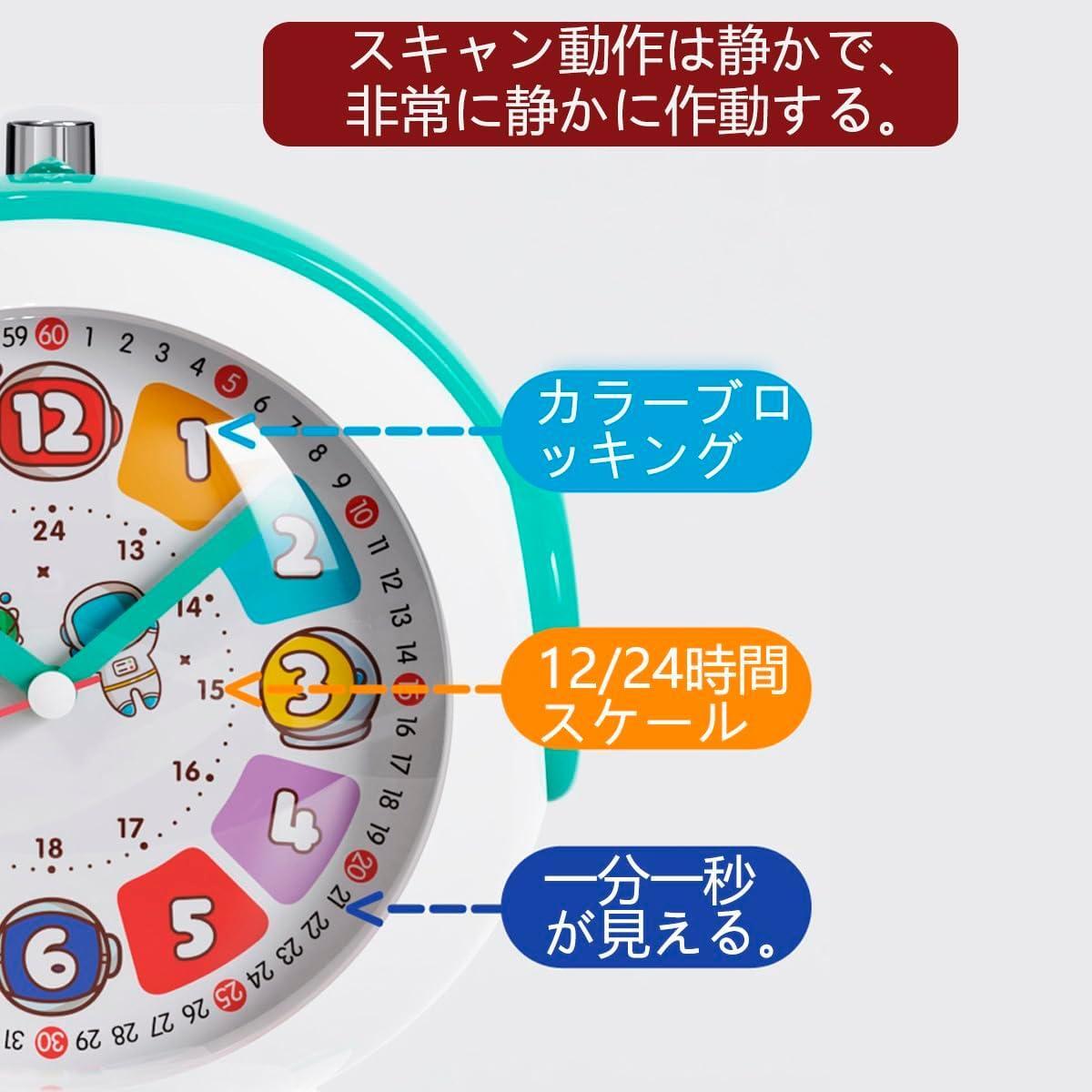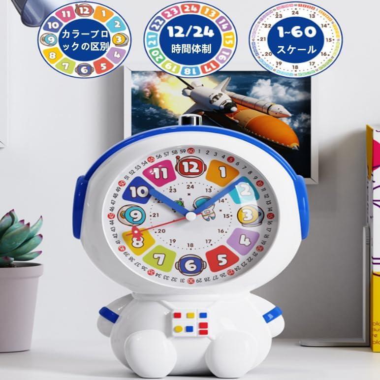子供用 アナログ 学習時計 かわいい 宇宙飛行士デザイン 静音 目覚まし時計 二