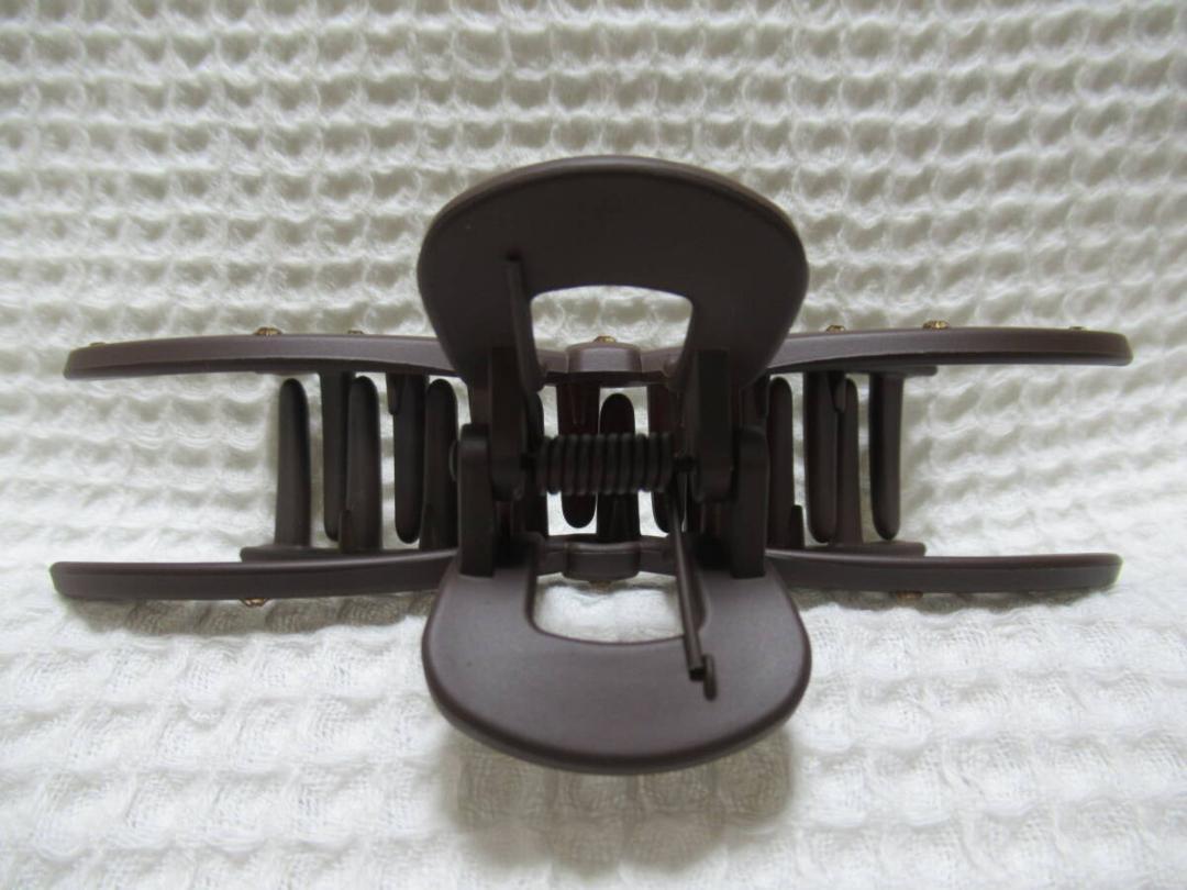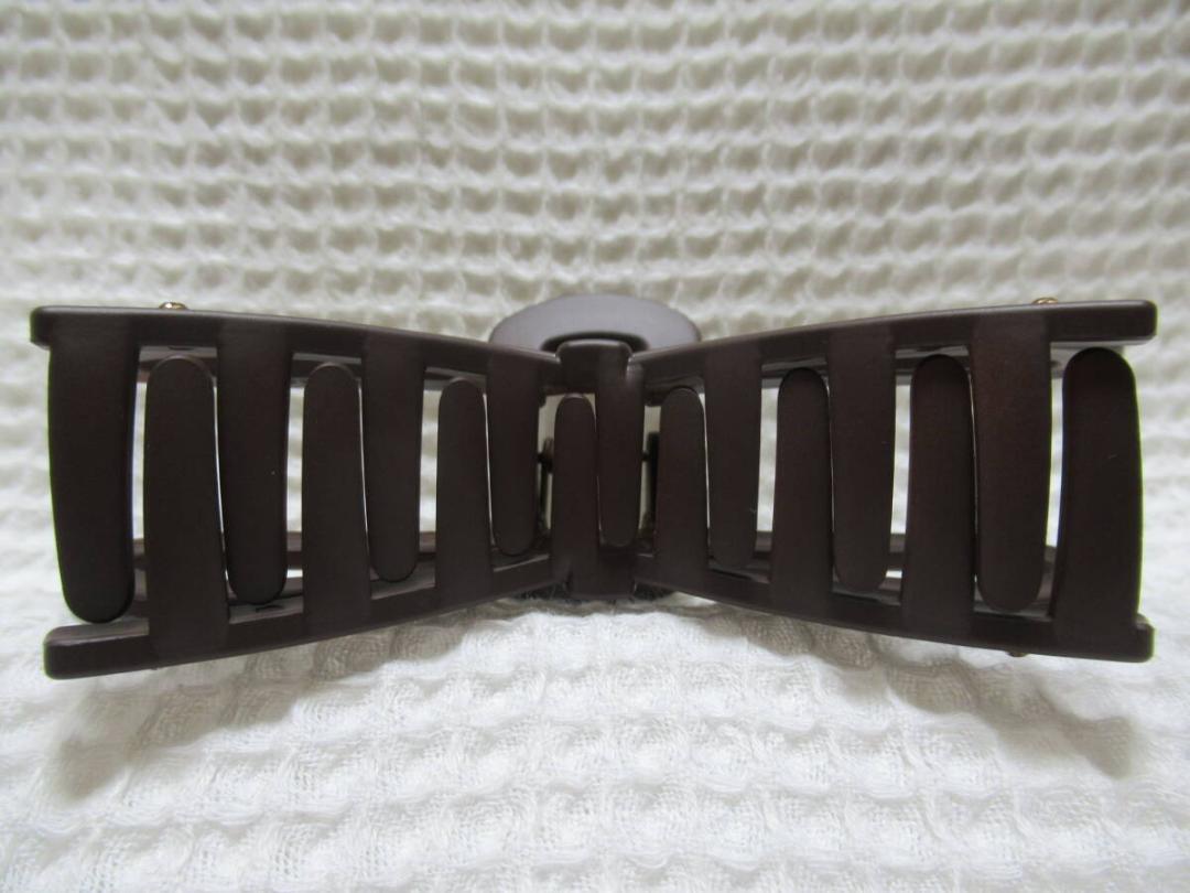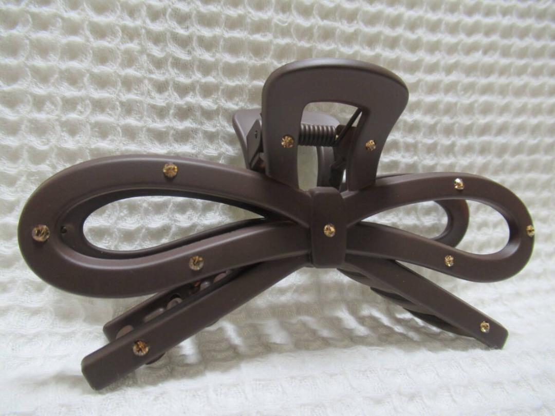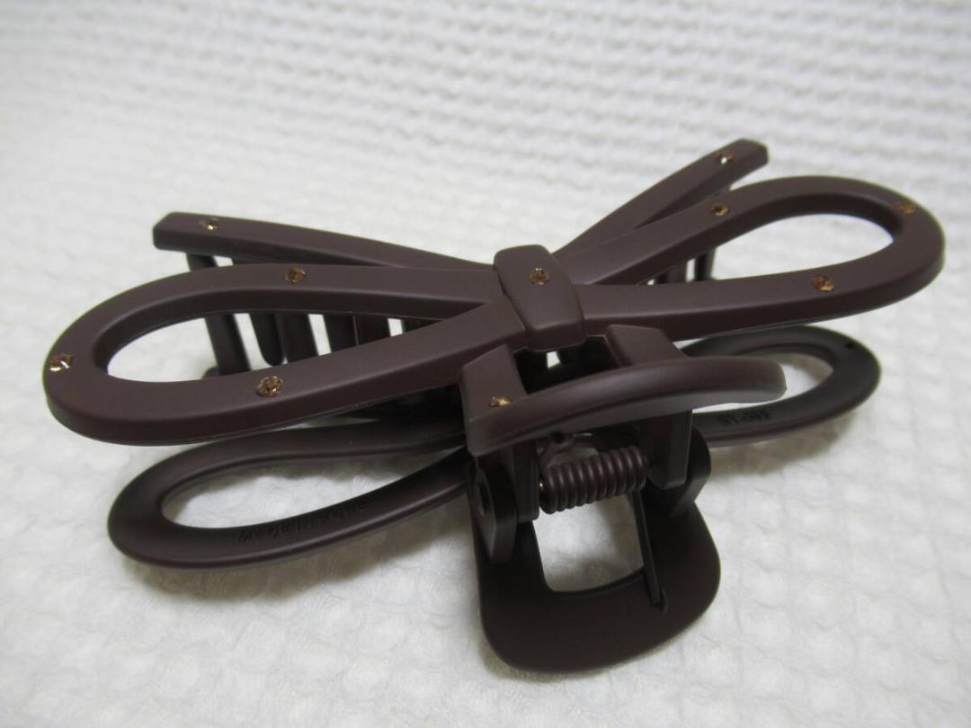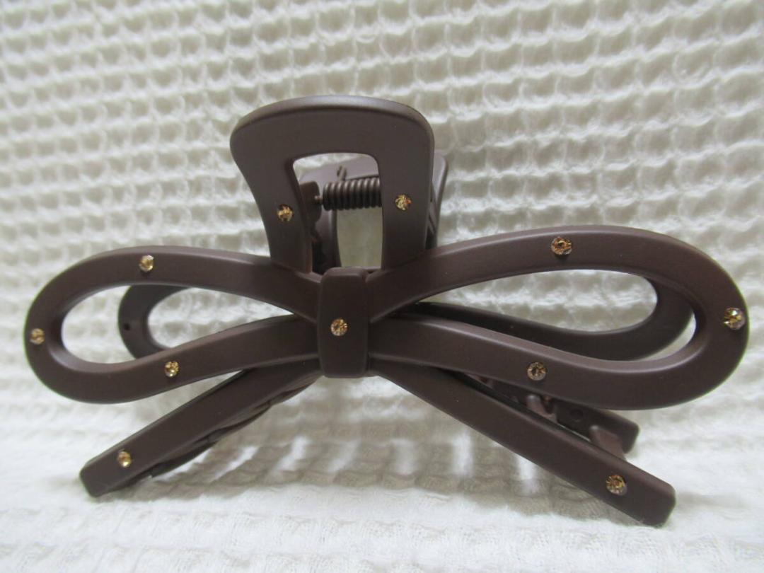 ラインストーン付き 樹脂製リボン型バンスクリップ ブラウン系