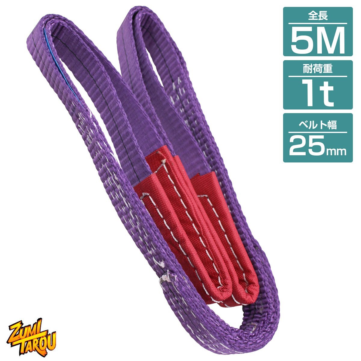 [1本/耐荷1t/長さ 5m] スリング ベルト 吊上げ ナイロン クレーン ロープ 荷吊り 玉掛け 牽引 運搬 1000kg 1トン 幅25mm