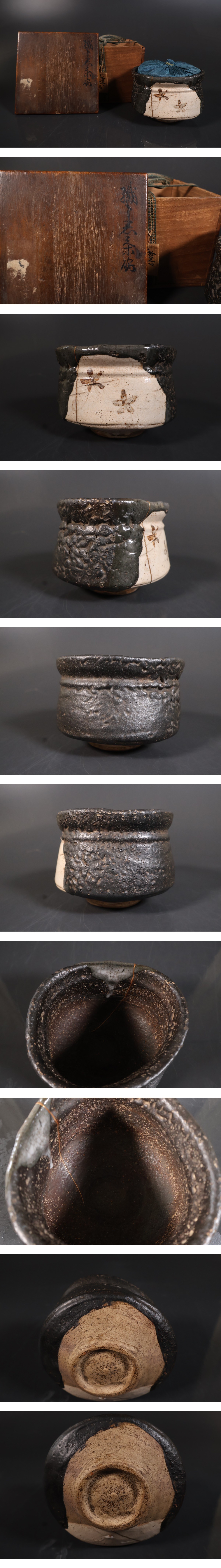 【和】(A3460) 時代古作 桃山江戸 黒織部茶碗 時代箱有 茶道具 古美濃