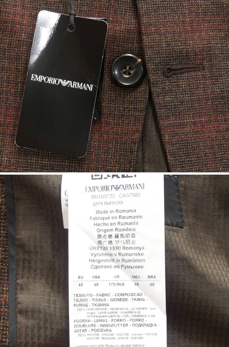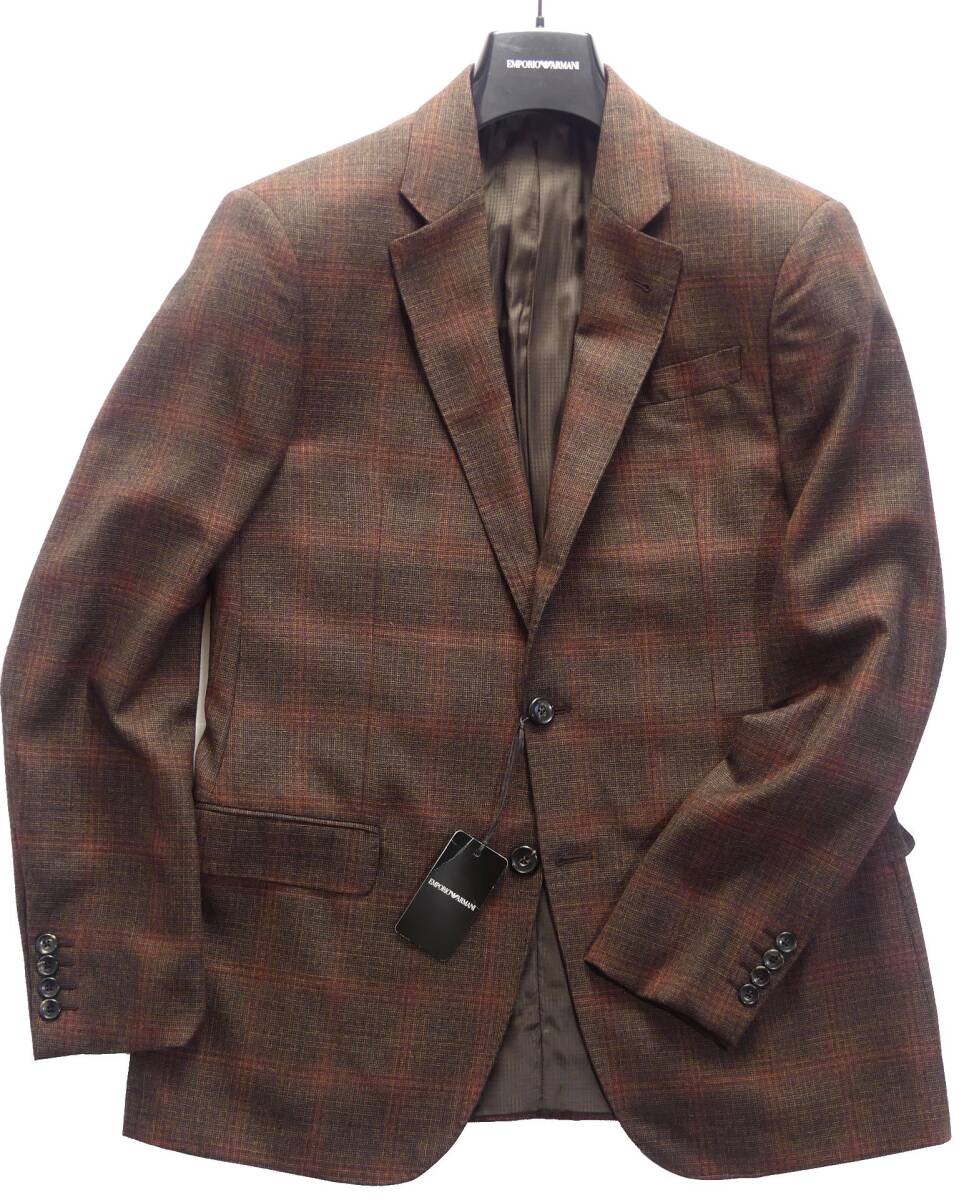 秋冬物新品231,000円EMPORIO ARMANIアルマーニ★暖かみのあるボルドーブラウン。ビジネス対応テーラードジャケット【48=日本M】