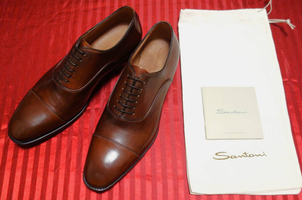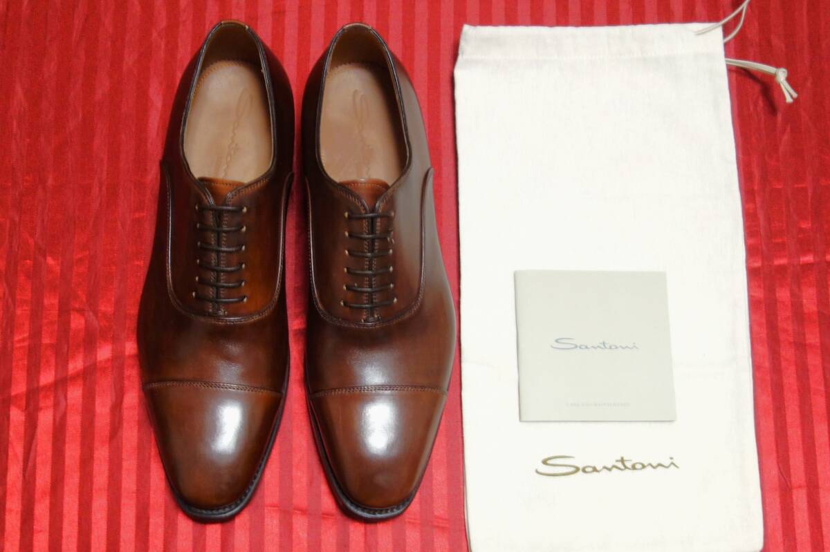 定価24.5万円 未使用品 サントーニ(SANTONI) ストレートチップビジネスシューズ UK71/2 US81/2 (日本サイズ26.5~27cm) 高級モデル濃茶