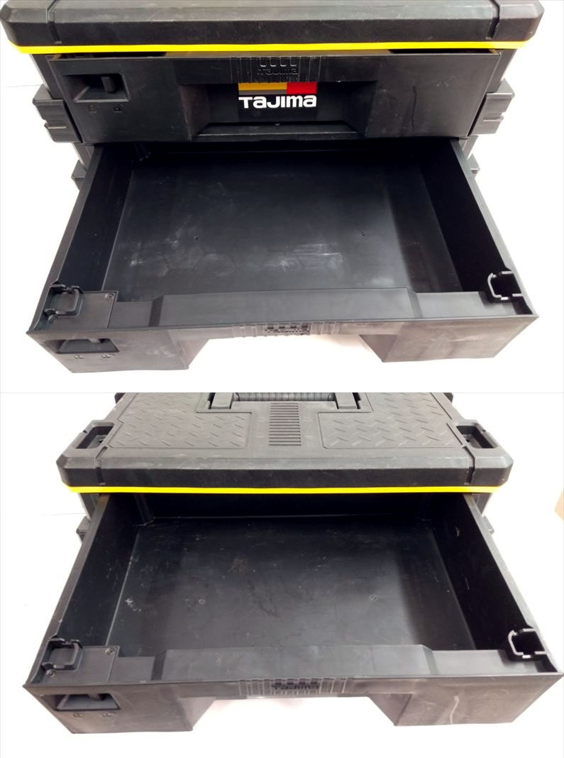 【商品特長】 ◆ボックス外側にセフホルダー機能を搭載 工具などのセフフックで収納できるので、取り出し、片付けが簡単。効率がアップします。 ◆連結機能搭載でロープ不要!荷崩れなし! 置くだけで即連結。ロープ掛けなしで移動しても荷崩れしない。 ◆セフパーツケース付き 上段はセフパーツケースSセット付き。セフで工具箱にも腰周りにも着脱できる! ◆引出しの飛び出しを防ぐロックスイッチ付 スイッチで固定し、移動時の安全を確保。 ◆持ち運びに便利なロックハンドル 移動時にバタつかない簡易ロック付き。 ◆耐荷重100kg、丈夫なトップカバー 乗ったり座ったりすることが可能な、丈夫なトップカバー。ブレーカーでの配線作業やエアコン設置に便利。 ◆安全性を高めるコーナーガード ぶつけた際の衝撃を緩和する耐衝撃設計 |
