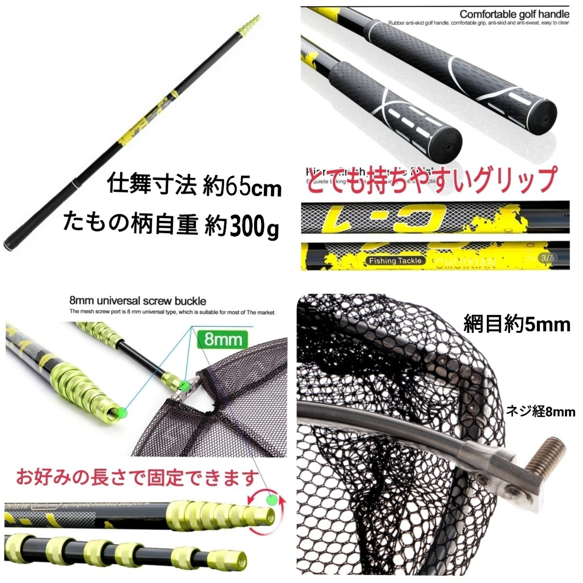 ◆重要◆→たもの柄は丸い形です。これは四角いたもの柄の場合、重さがかかりすぎると折れる恐れがありますが、丸の場合力を逃がすので折れません。