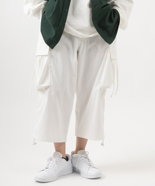 キーワード:カーゴパンツ メンズ ウエストゴム クロップド ストレッチ テーパード ハイウエスト ワイドパンツ 無地