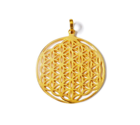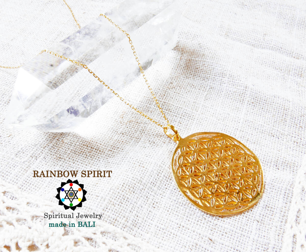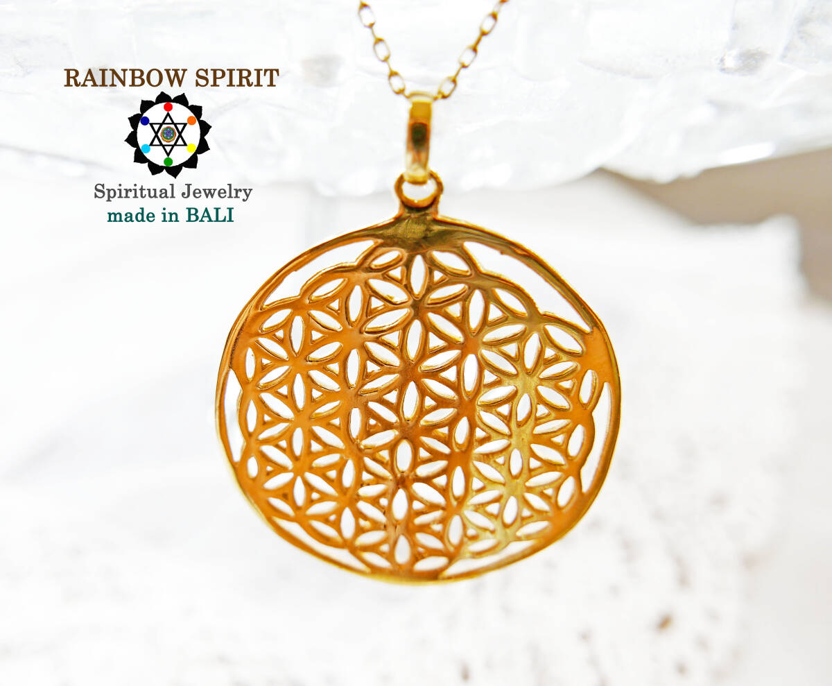 ☆☆送料無料☆☆神聖幾何学・フラワーオブライフ☆☆バリ島の僧侶の祈祷&浄化をほどこしたヒーリングペンダント☆☆純金加工/直径32mm