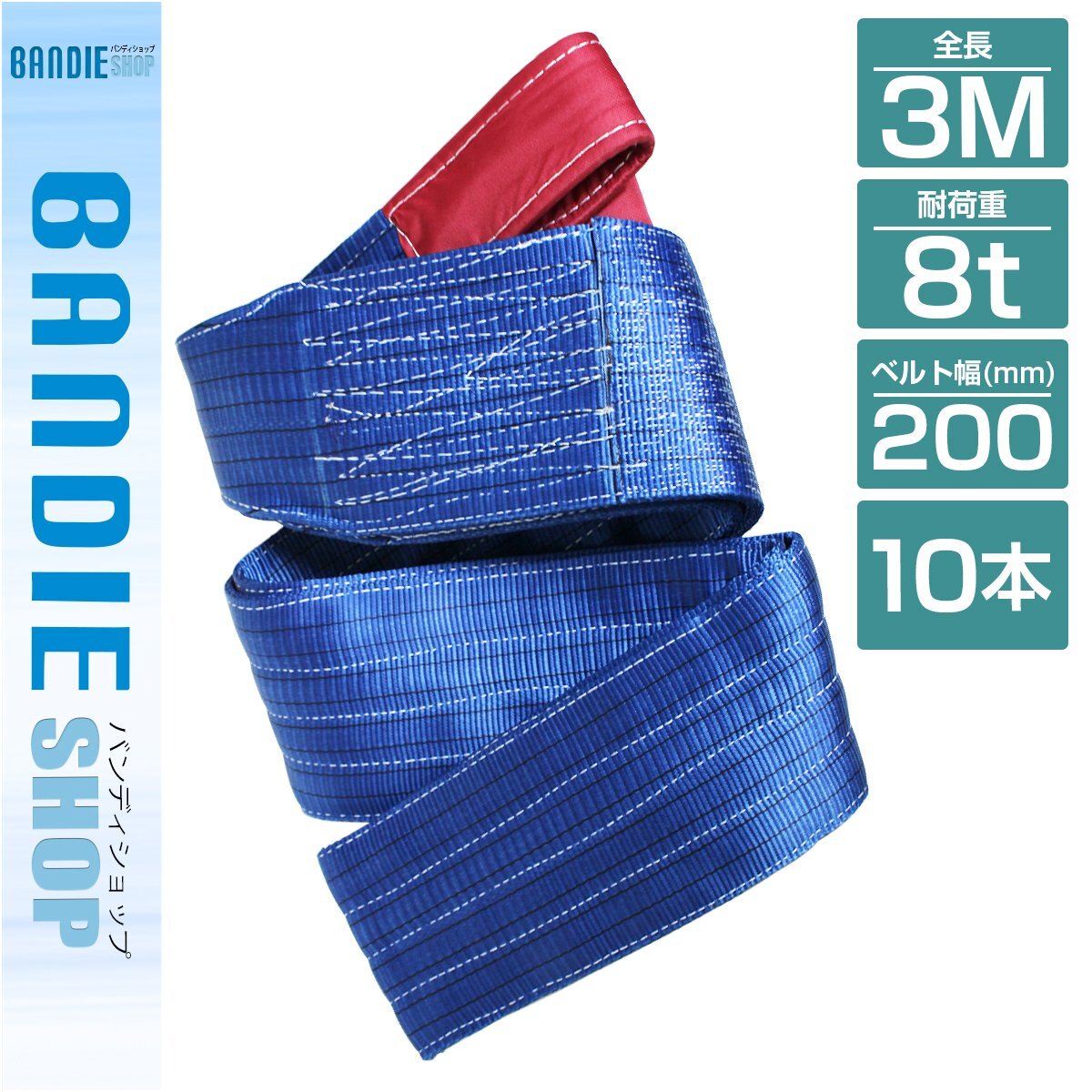 [10本 セット/耐荷8t/長さ 3m] スリング ベルト 吊上げ ナイロン クレーン ロープ 荷吊り 玉掛け 牽引 運搬 8000kg 8トン 幅200mm