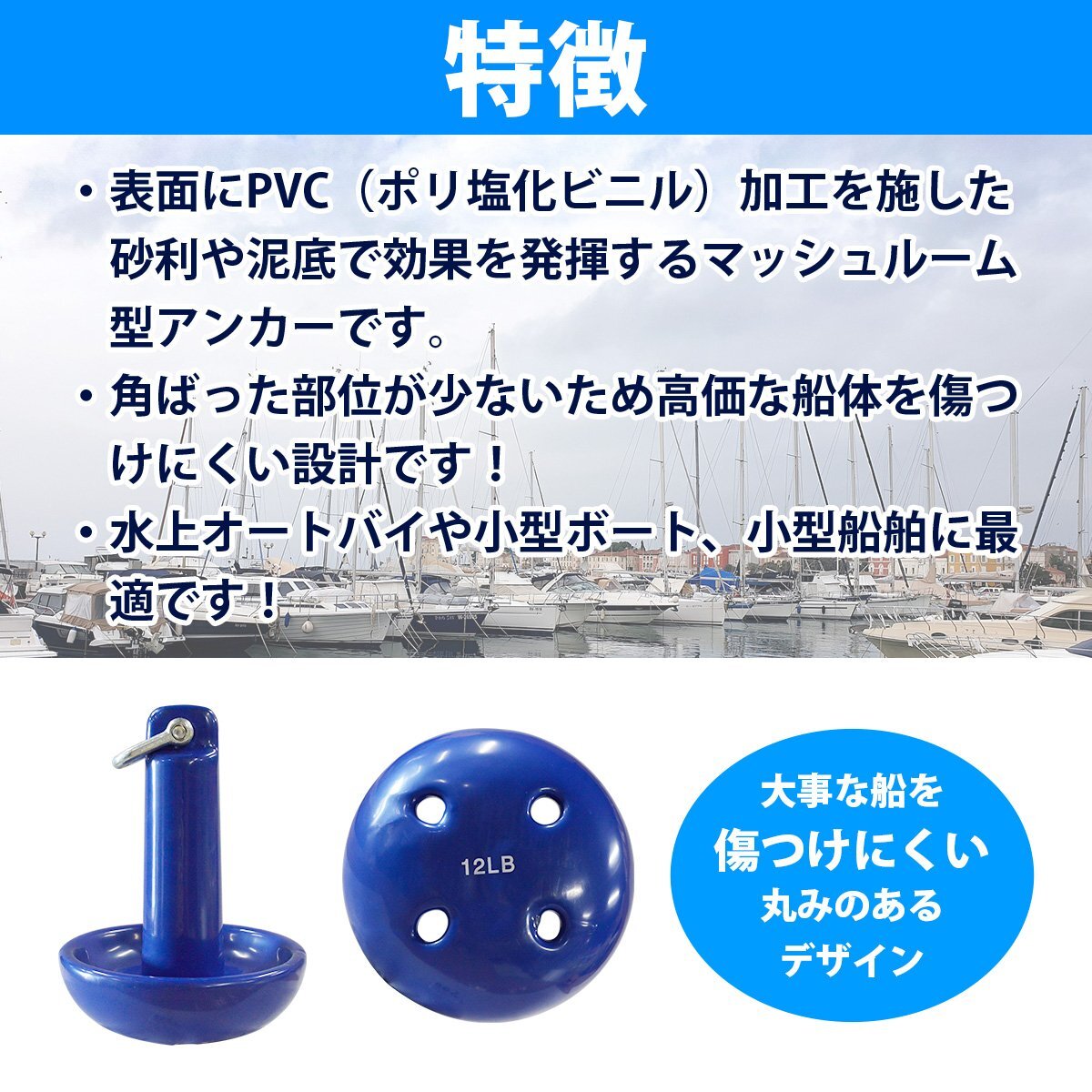 【新品即納】12LB 5.5kg 5.5キロ マッシュルームアンカー 錆に強い PVCコート ジェットスキー ゴムボート 船 青 ブルー アンカー 錘 碇
