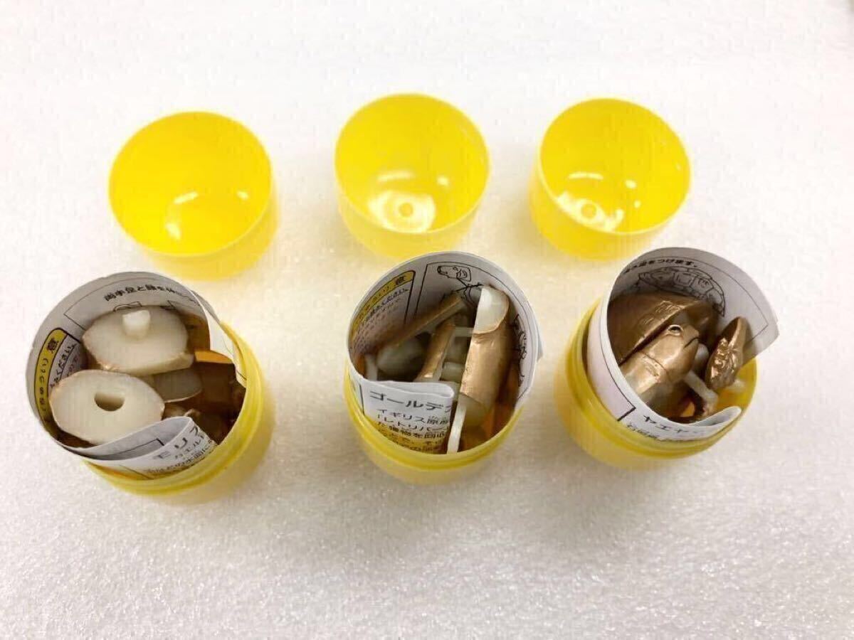 カプセルに入った状態(未使用・未組立)で保管していたので、各パーツ自体にも破損や塗装剥がれなどもありません。ただし、あくまでも保管品となります。(写真参照)