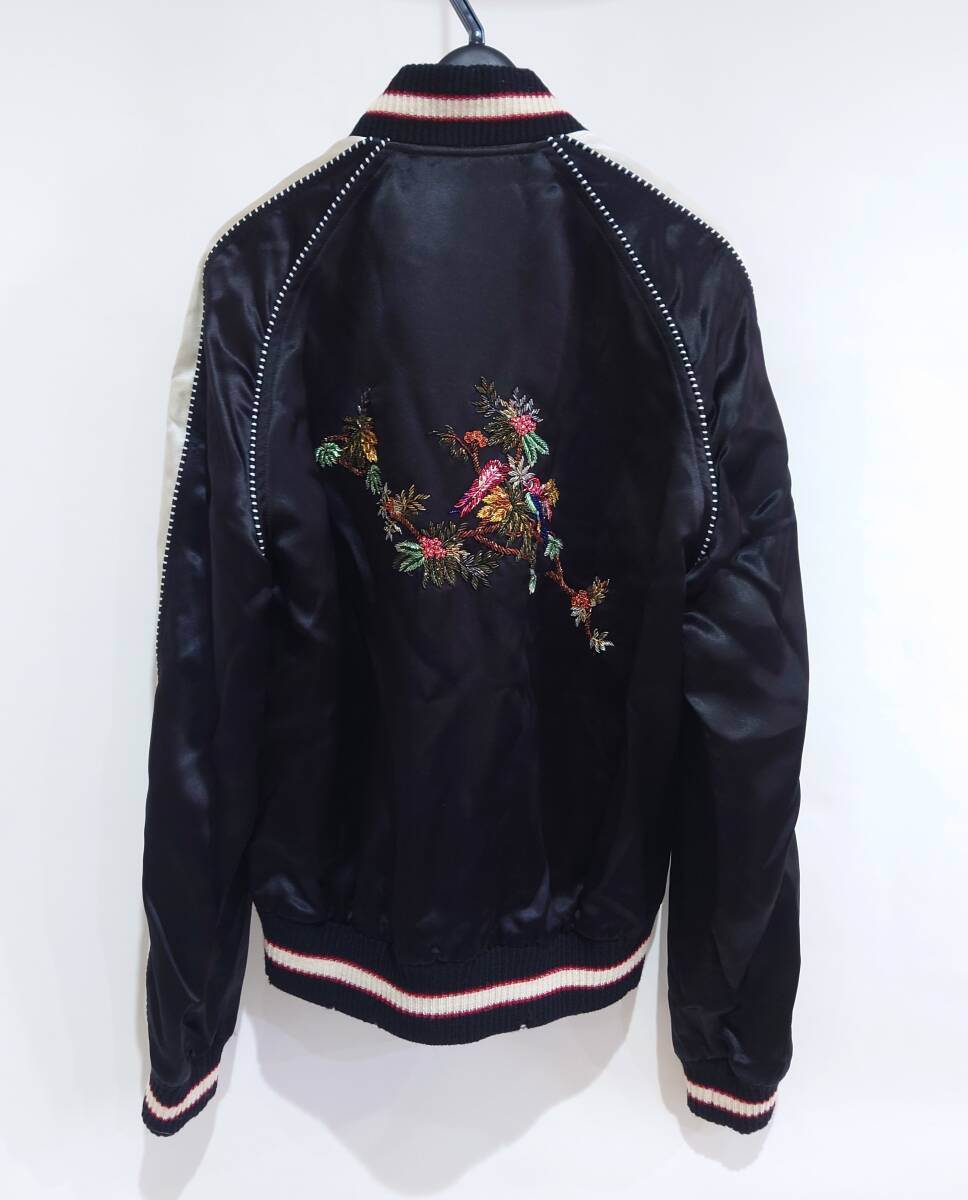 国内正規品 SAINT LAURENT PARIS サンローランパリ バード刺繍 スカジャン ブルゾン 44 ブラック Y-335028