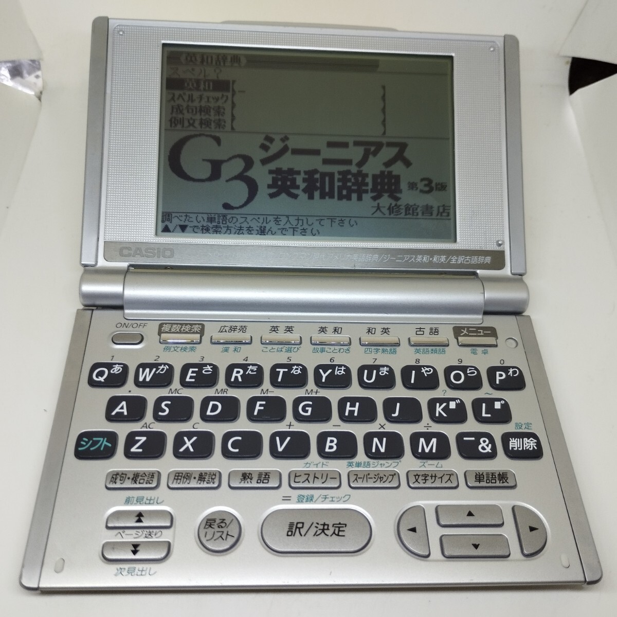「ジーニアス和英辞典」に加え、英語のニュアンスが学習できる英英辞典「ロングマン現代アメリカ英語辞典」や、「ジーニアス英和辞典」の重要単語約14,000語がネイティブスピーカーの声で収録される電子辞書。高校の学習に役立つ12種類の辞書を収録し、国語系では「広辞苑」「全訳古語辞典」「漢字源JIS版」など7種類、英語系では「ジーニアス英和/和英辞典」「ロングマン現代アメリカ英語辞典」など4種類、情報系では「日経パソコン用語辞典」が収録される。