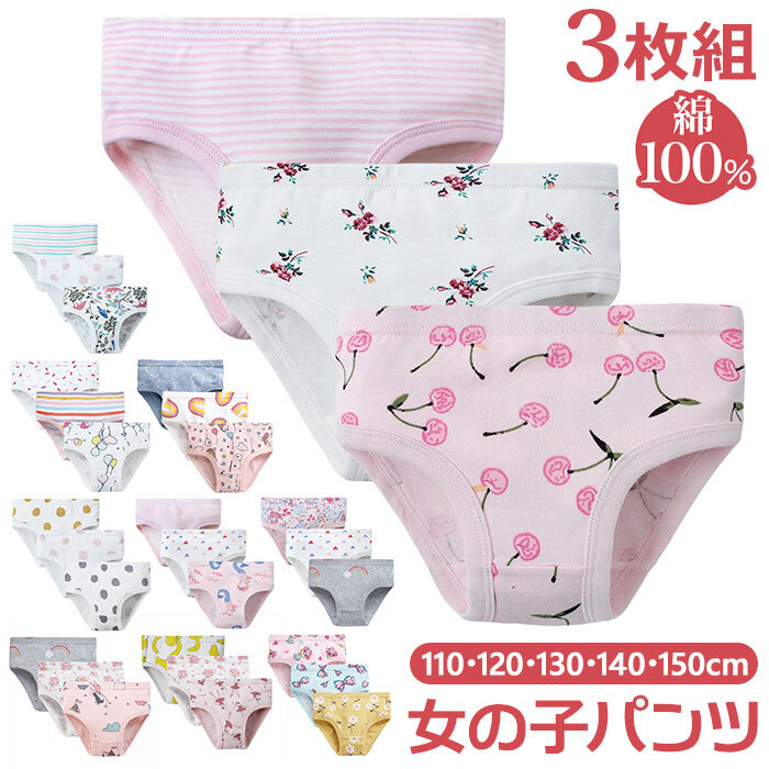 | 商品名 | 女の子パンツ 100%綿 3枚組 h103 |