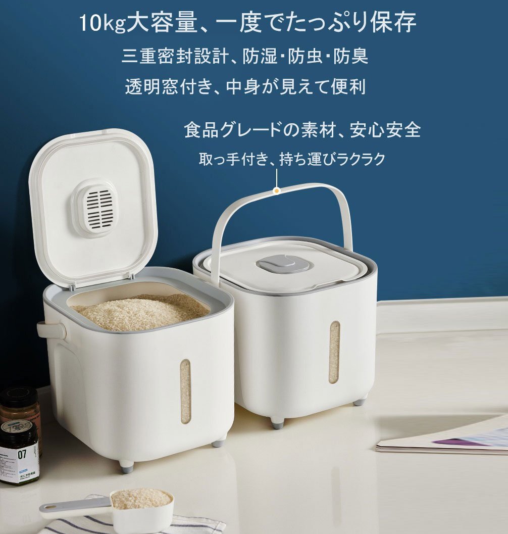 自動 保存容器 米びつ 密閉容器 10kg 鮮度キープ ペットフードの保存対応 梅雨対策 防虫 shw0068.2