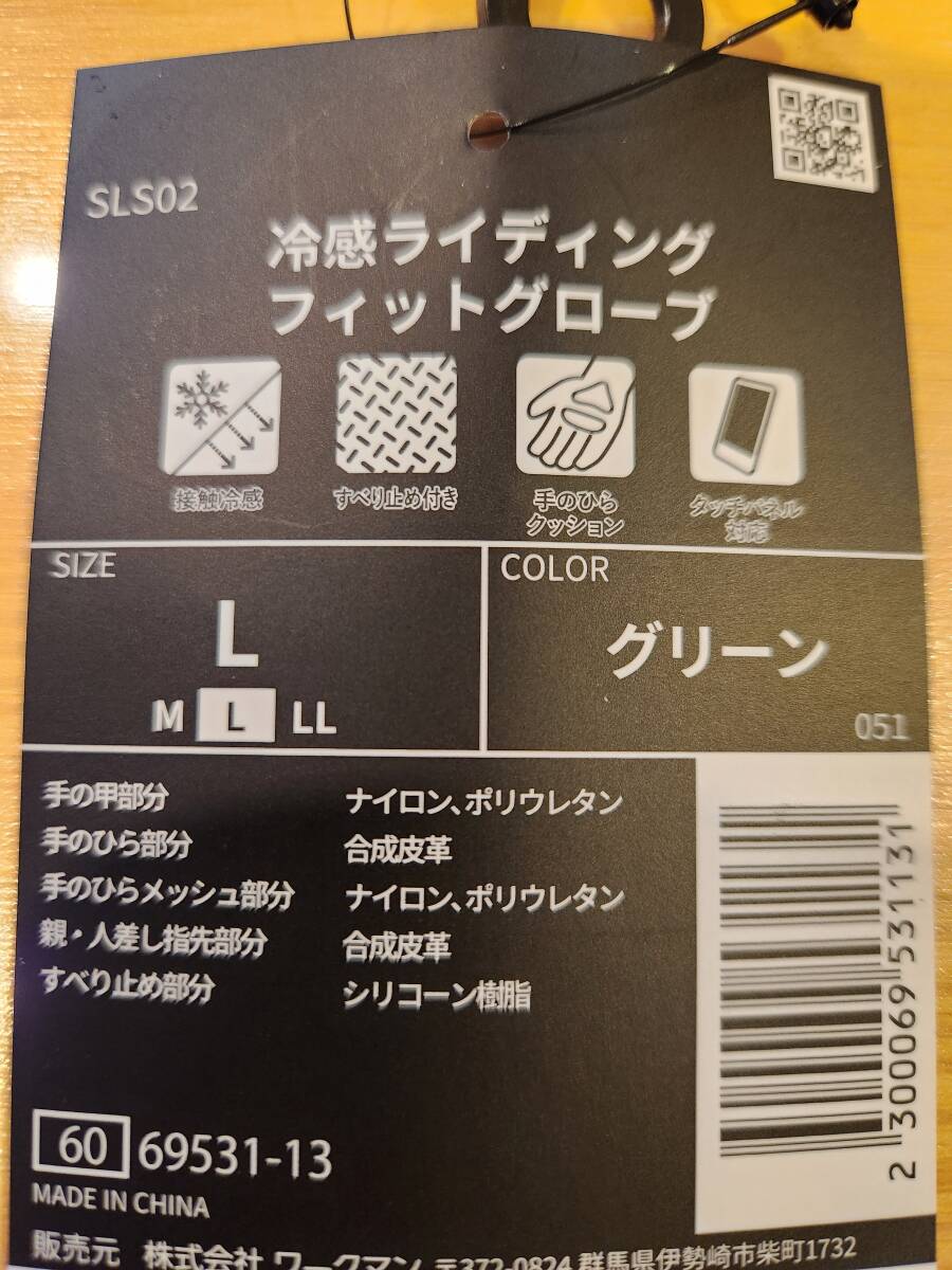 ワークマン 冷感ライディングフィットグローブ グリーン Lサイズ SLS02 新品 即決
