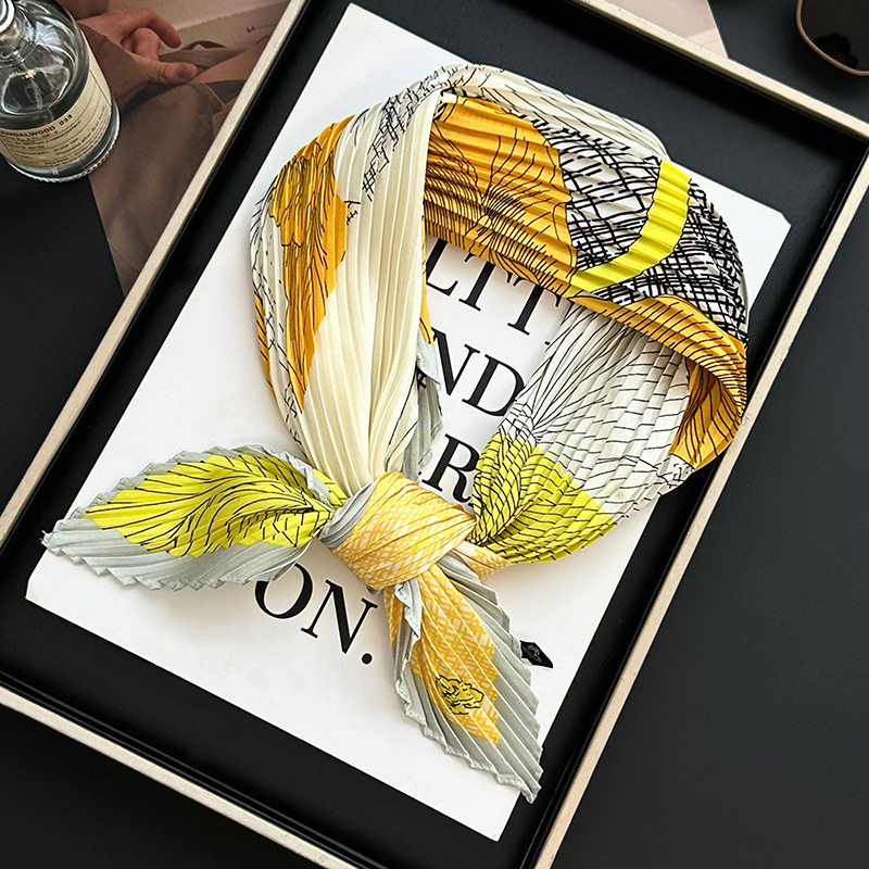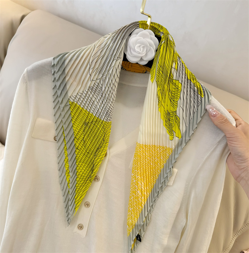 【S-109】新品ひし形プリーツ スカーフ70cm ストール 巻き方 首元 おしゃれ 飾りスカーフ