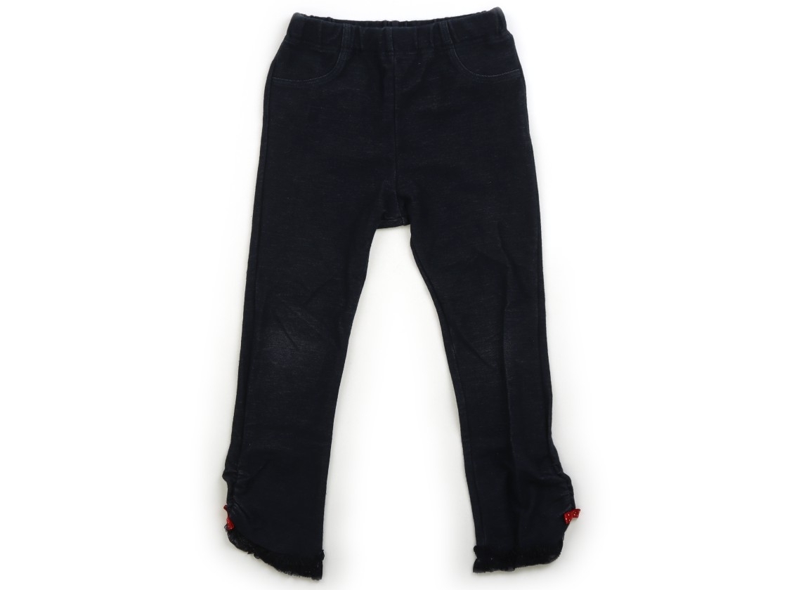 デニム風ストレッチパンツ、ウエストは総ゴムです。裾のフリル部分からかなり繊維の飛び出しが見受けられます。薄っすら毛玉感やお尻に引っ掛け傷など使用感あり。普段使いにいかがでしょうか。