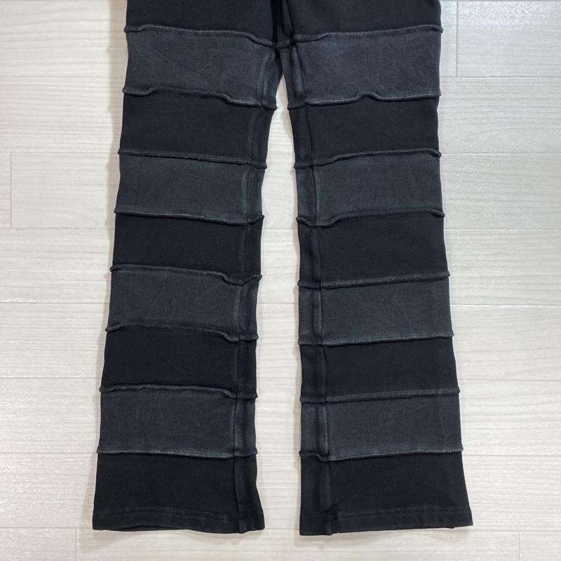 Hullo nice day!/ハローナイスデイ/Y2Kデザイン/ストレッチ/ツギハギデザイン/カルゼパンツ/ボーダー切り替え/スリムフレアシルエット/2577