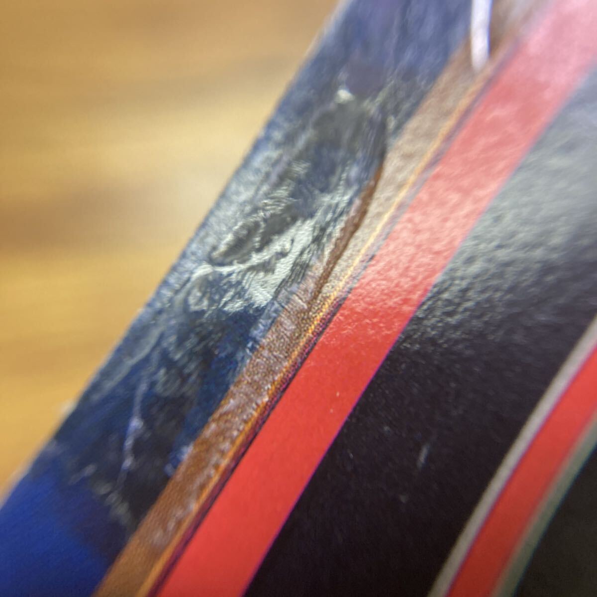 また、4枚目の画像のように、台紙の表側にテープをがしたような破れがありました。