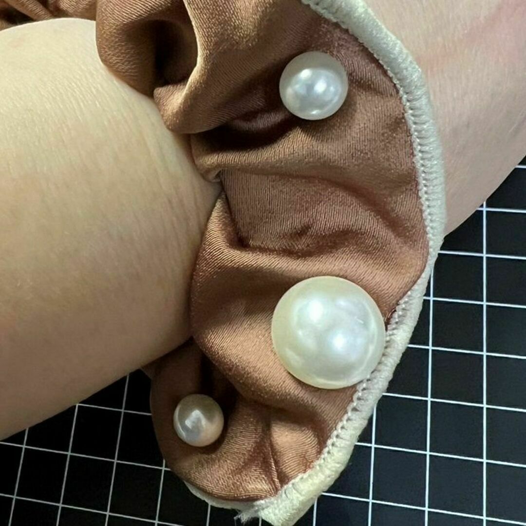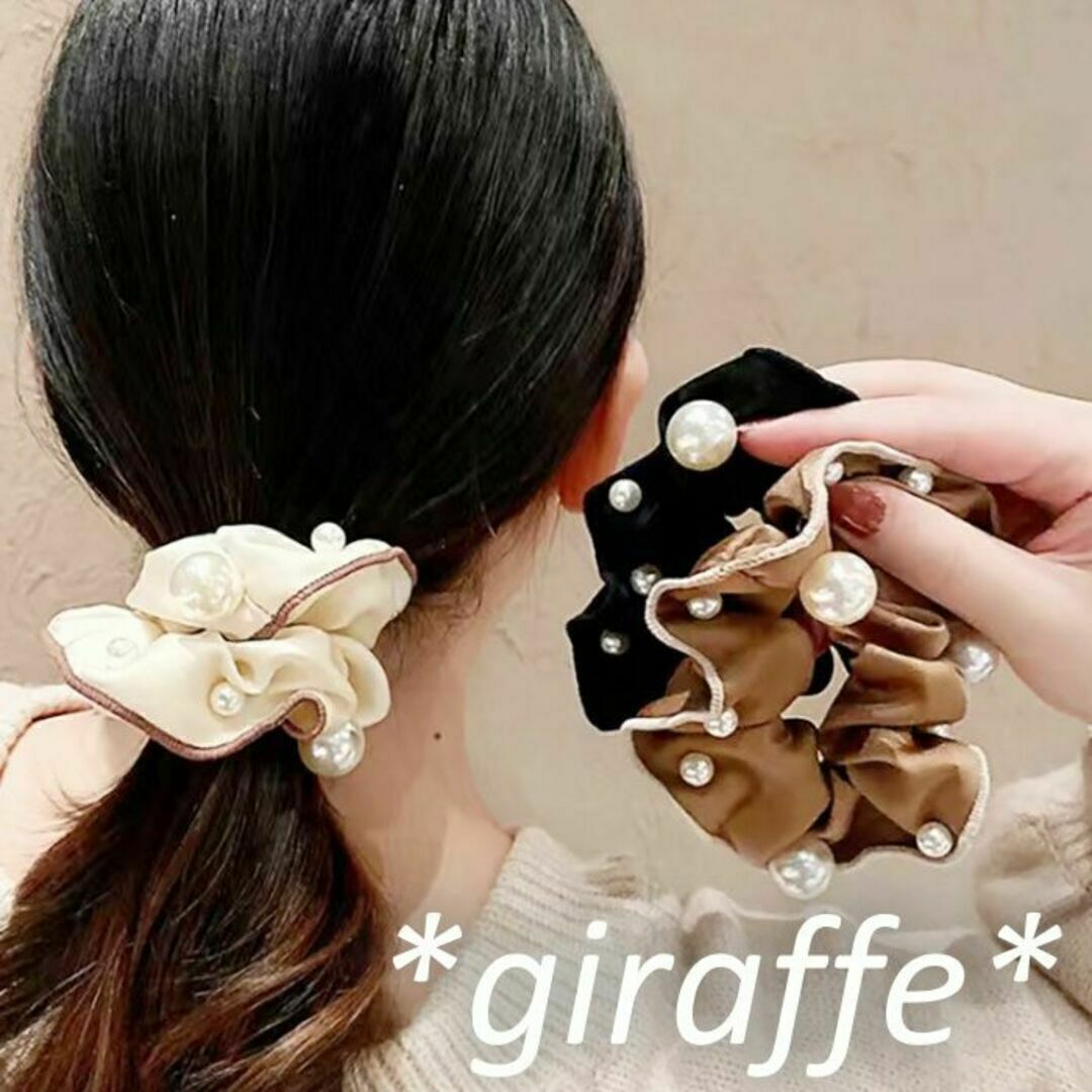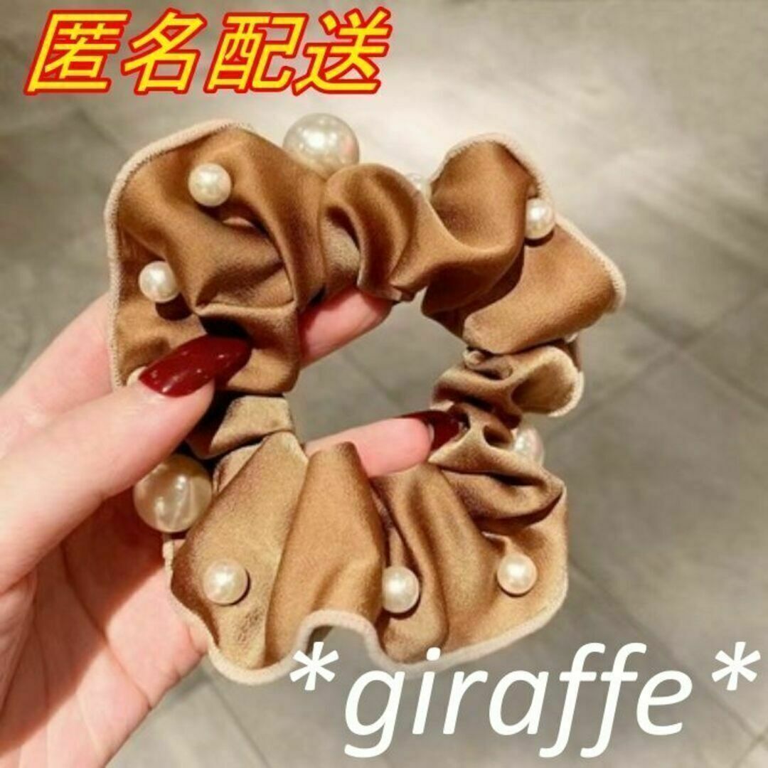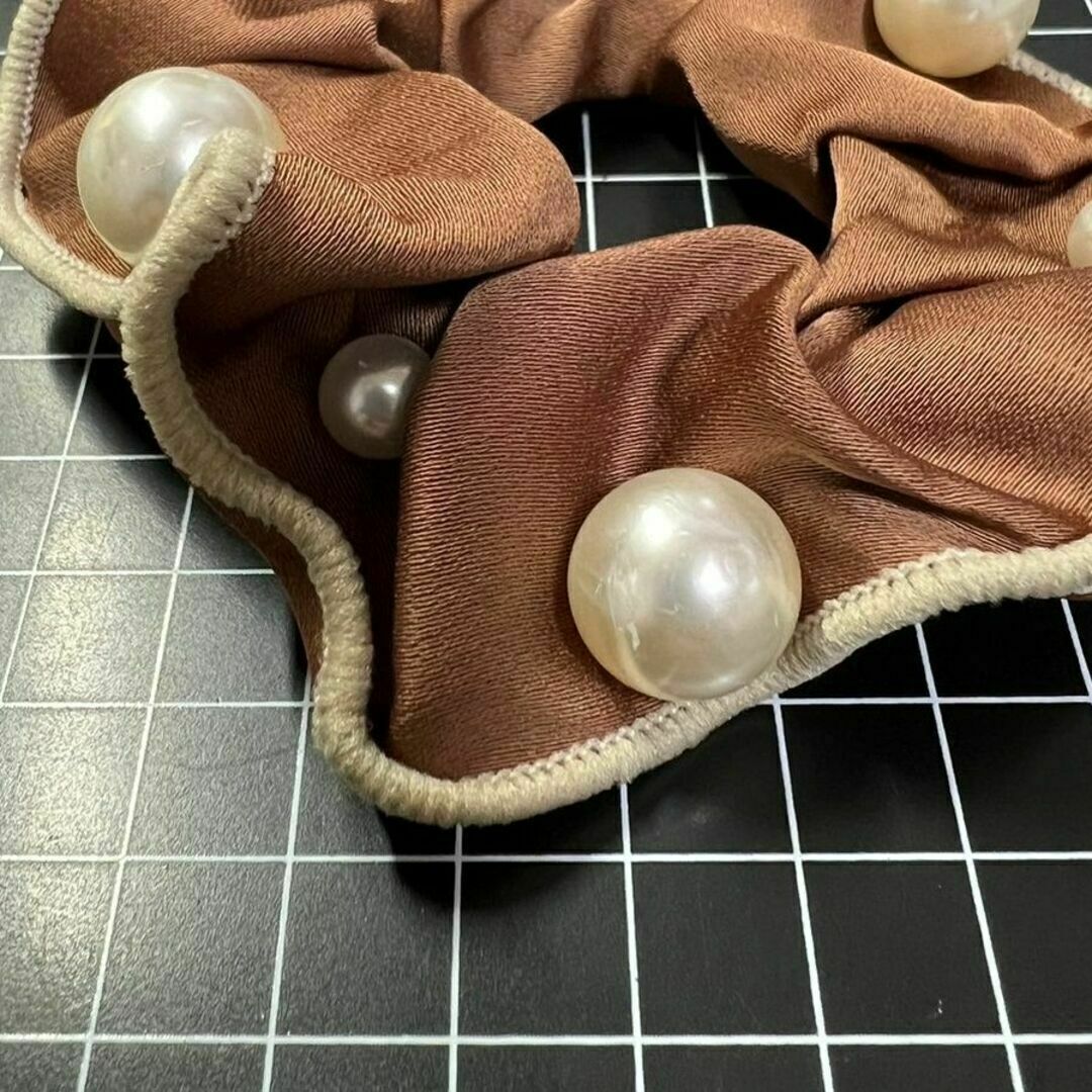E346 匿名配送 シュシュ パール コーヒー ブラウン 髪ゴム ヘアゴム 一つ結び ハーフアップ お団子