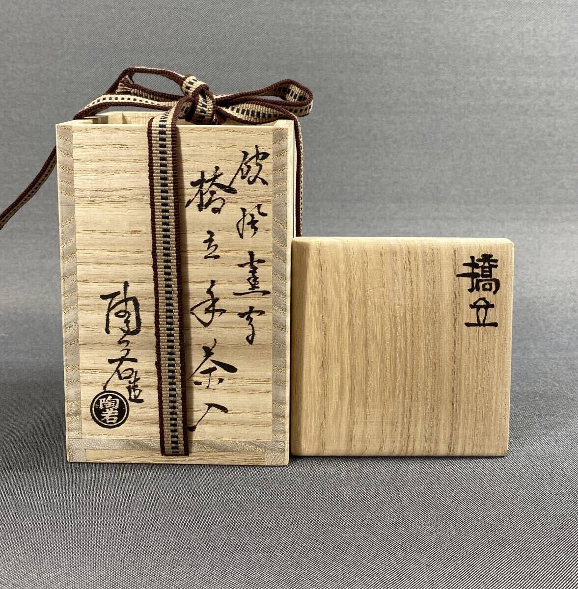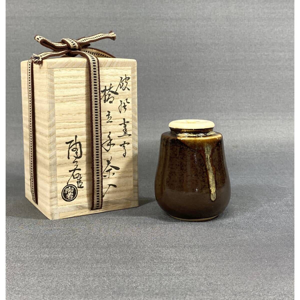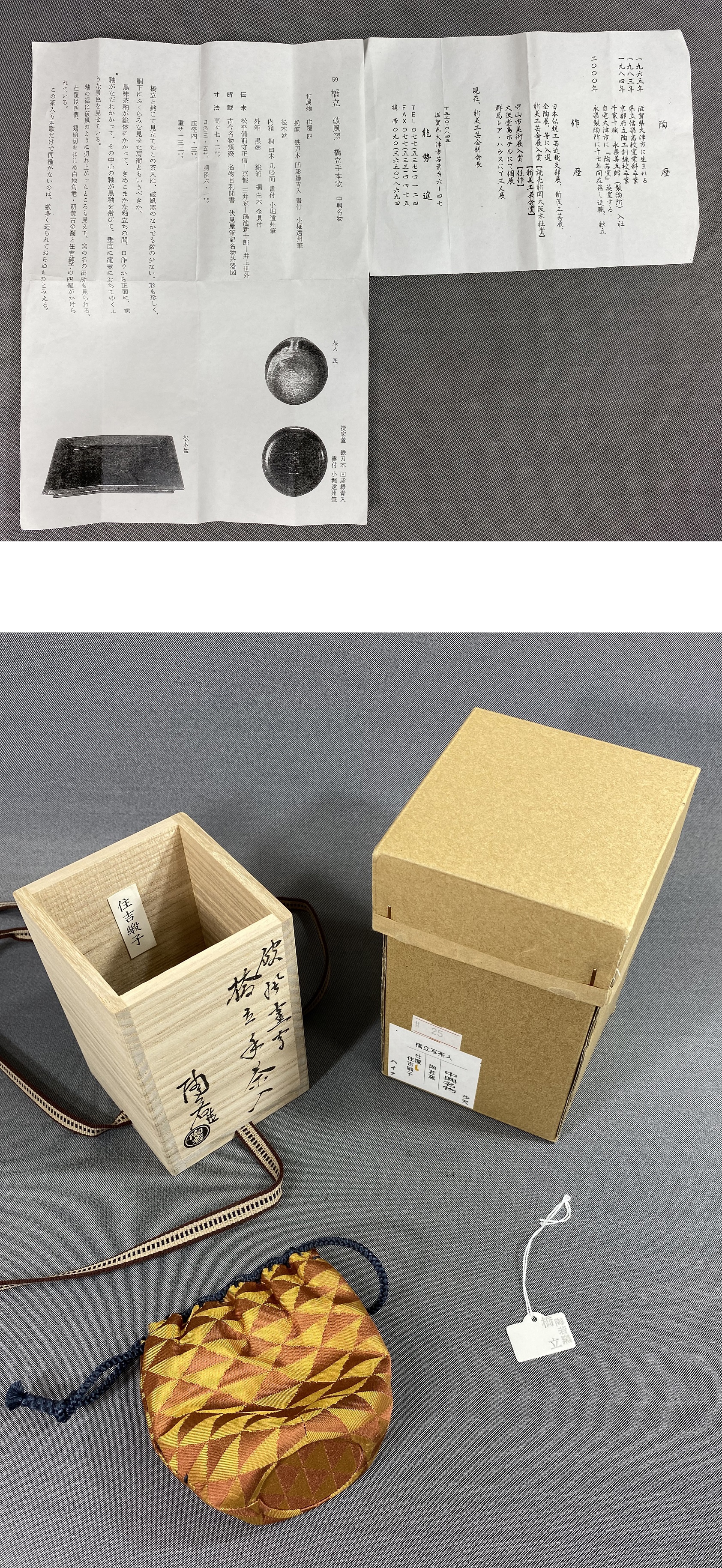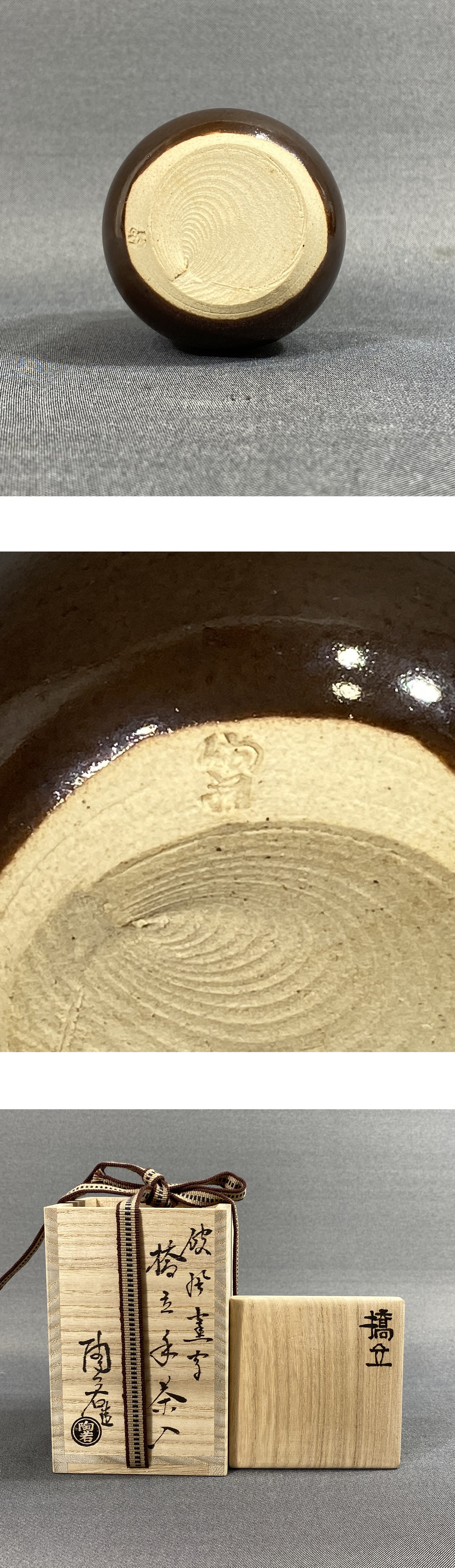【風車】 能勢進 造 陶若窯 橋立手 茶入 住吉緞子▲在銘 共箱 仕覆▲茶道具 破風窯