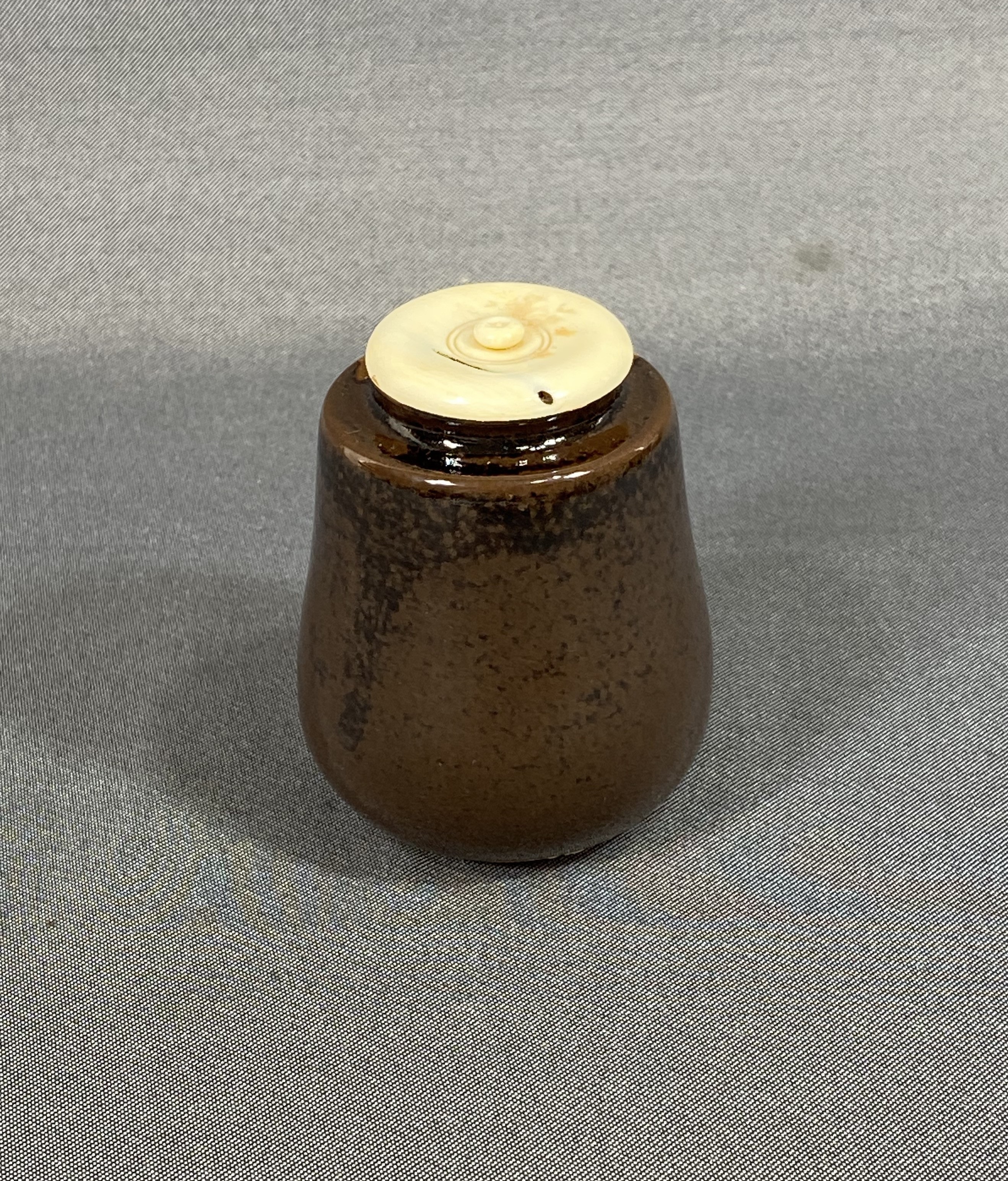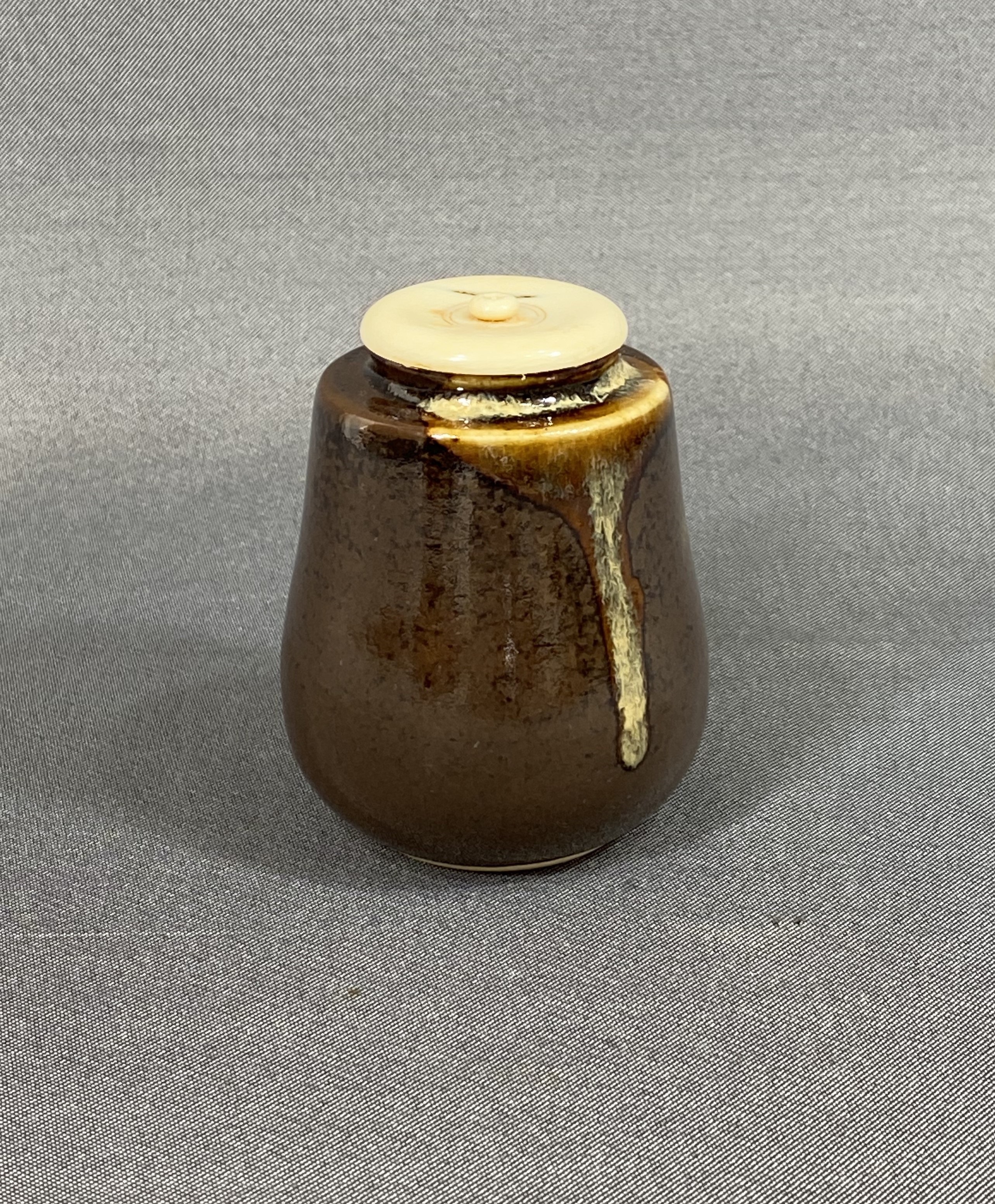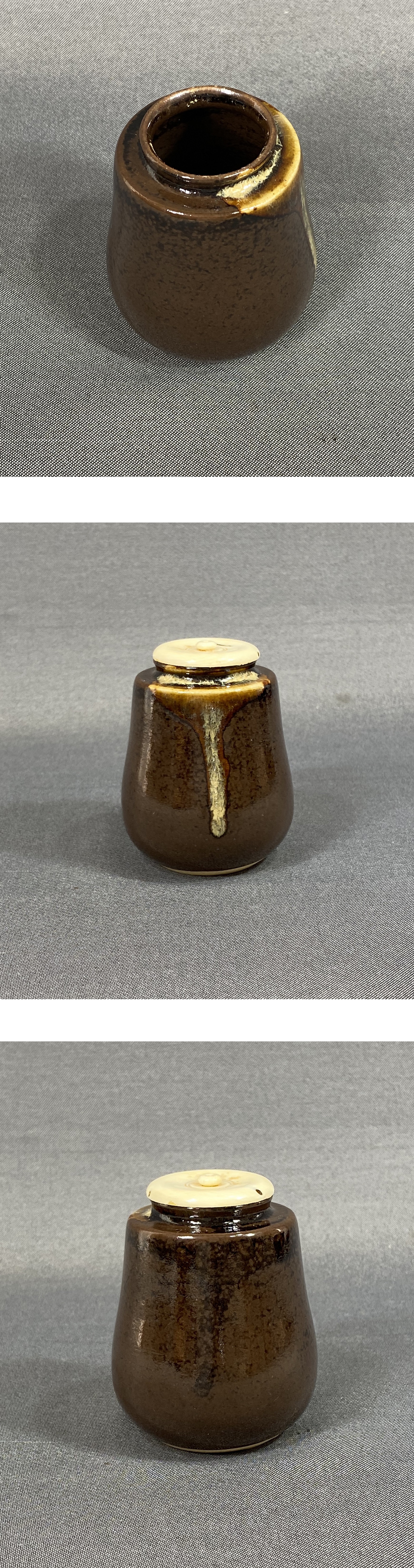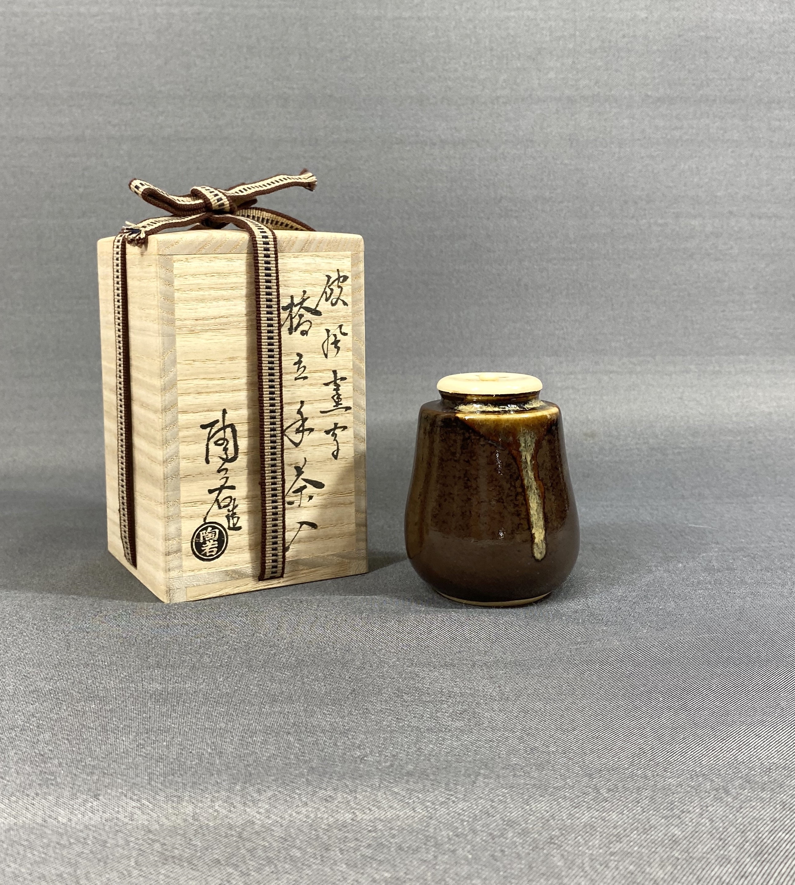 【風車】 能勢進 造 陶若窯 橋立手 茶入 住吉緞子▲在銘 共箱 仕覆▲茶道具 破風窯