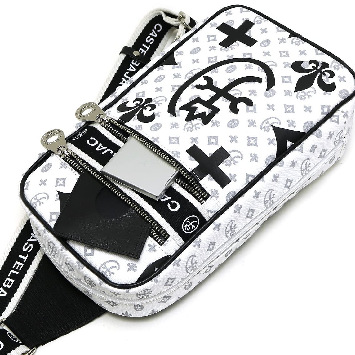 ブランド:CASTELBAJAC(カステルバジャック)カラー:ホワイトサイズ:**説明カステルバジャック(CASTELBAJAC)のワンショルダーバッグ。[ポイント]カステルバジャックの代名詞であるモノグラムをダブルでプリントし表現したデザイン。収納ポケットも多く、使いやすいワンショルダーバッグです。[素材]本体素材は、綿とポリ塩化ビニルを使用した帆布生地でできており、丈夫で撥水機能も備わったバッグになっています。[機能・収納]●正面ファスナーポケット×2●内装○ファスナーポケット○オープンポケット[型番:38911]**/■高さ31.5・幅17・まち8cm■ポケット:内側2・外側2ヵ所■重さ:450g