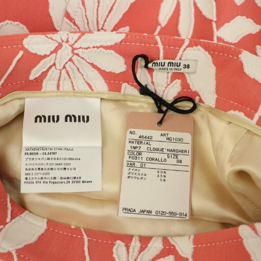 未使用品 ミュウミュウ miumiu フラワーミニスカート 台形 ジャガード 38 ピンク /MY ■OS レディース